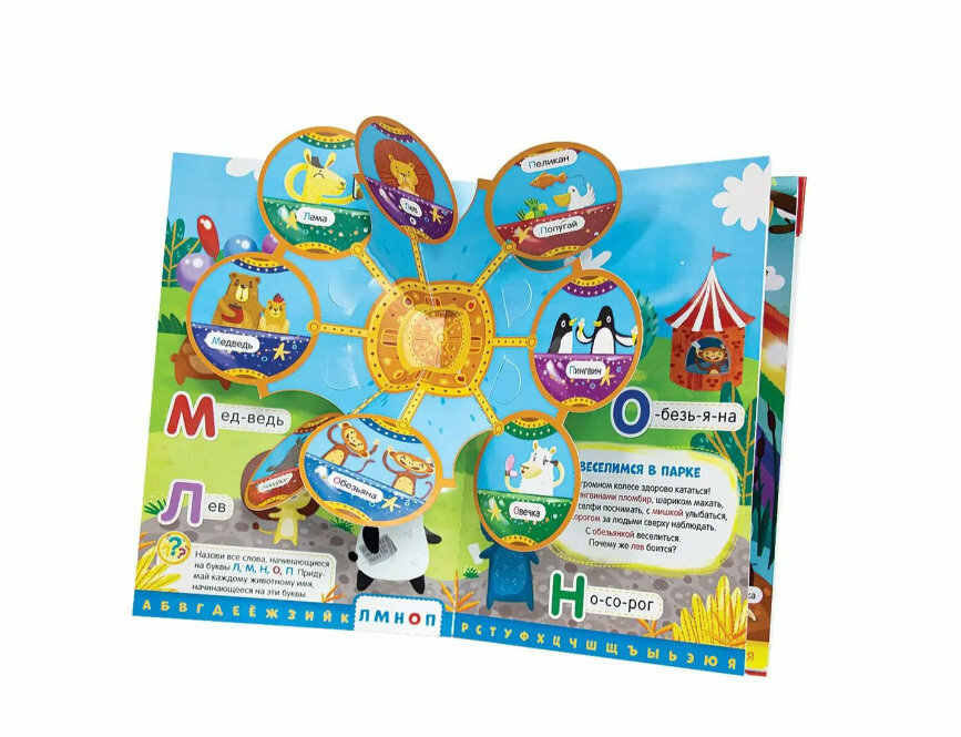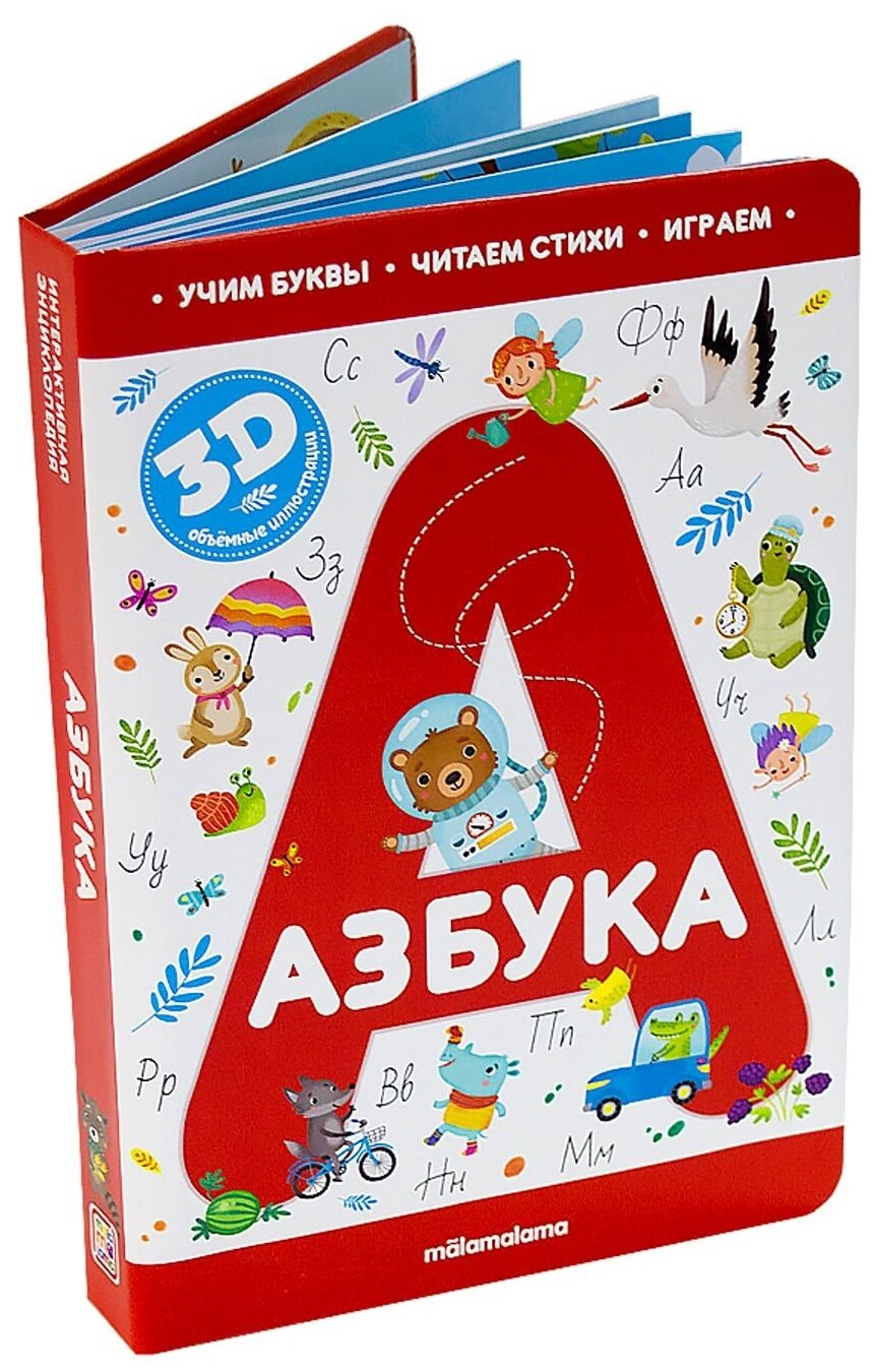 Интерактивная энциклопедия "Азбука" с невероятными 3D-иллюстрациями и весёлыми стихами поможет ребёнку выучить алфавит. На каждом развороте книги предлагается выполнить задание на поиск слов, начинающихся с определенной буквы — таким образом ребёнок не просто изучает алфавит, но и расширяет словарный запас. Наличие объемных элементов развивает мелкую моторику и пространственное мышление ребёнка. Книга сделана из качественного и плотного картона. Яркая и контрастная печать делает картинки максимально насыщенными. Изучайте азбуку просто и интересно!
