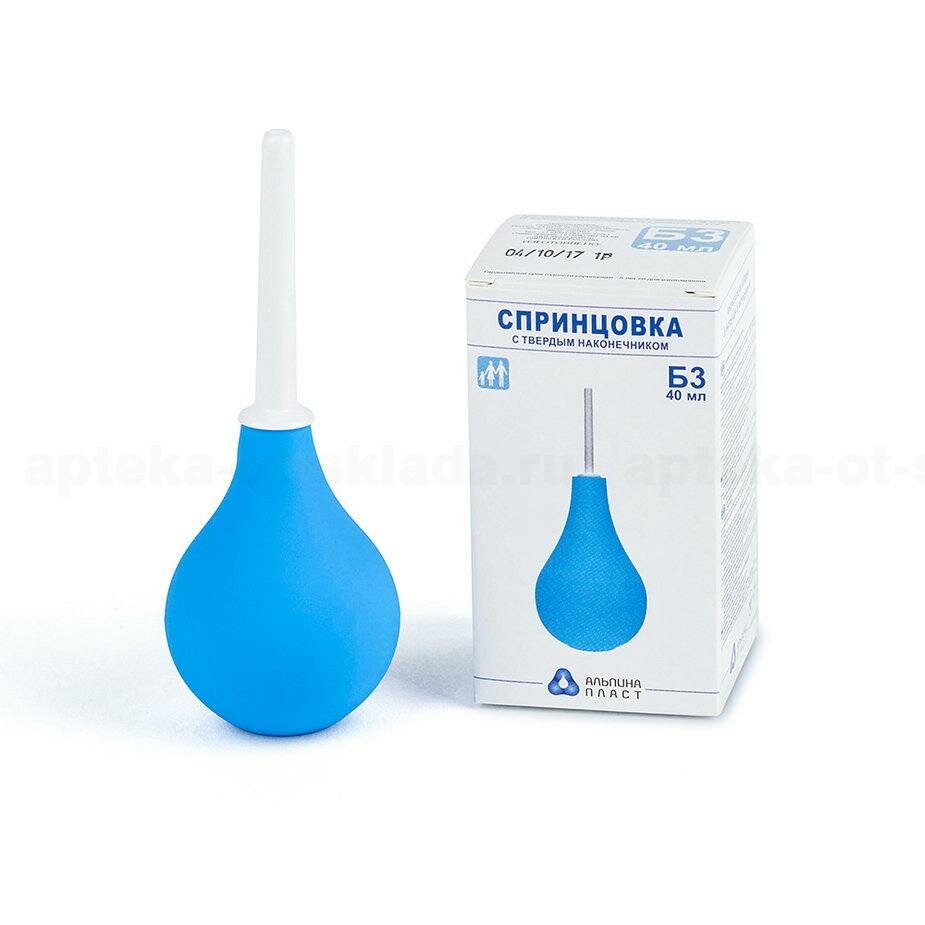 Спринцовка не должна контактировать с лекарственным раствором более 30 минут. Спринцовка не должна подвергаться воздействию прямых солнечных лучей, бензина и других растворителей. Спринцовку для маслосодержащих средств не применять!