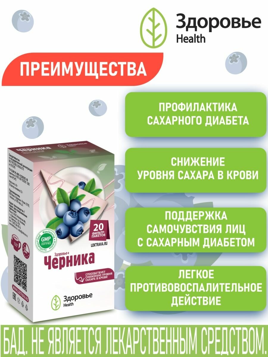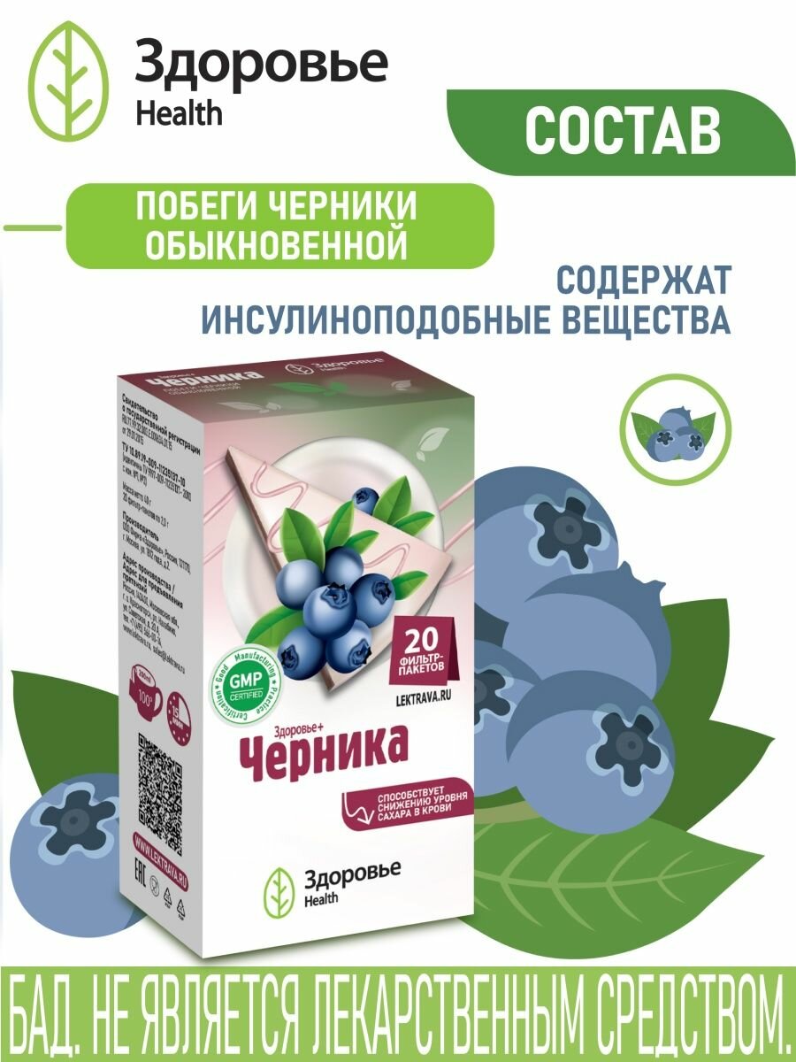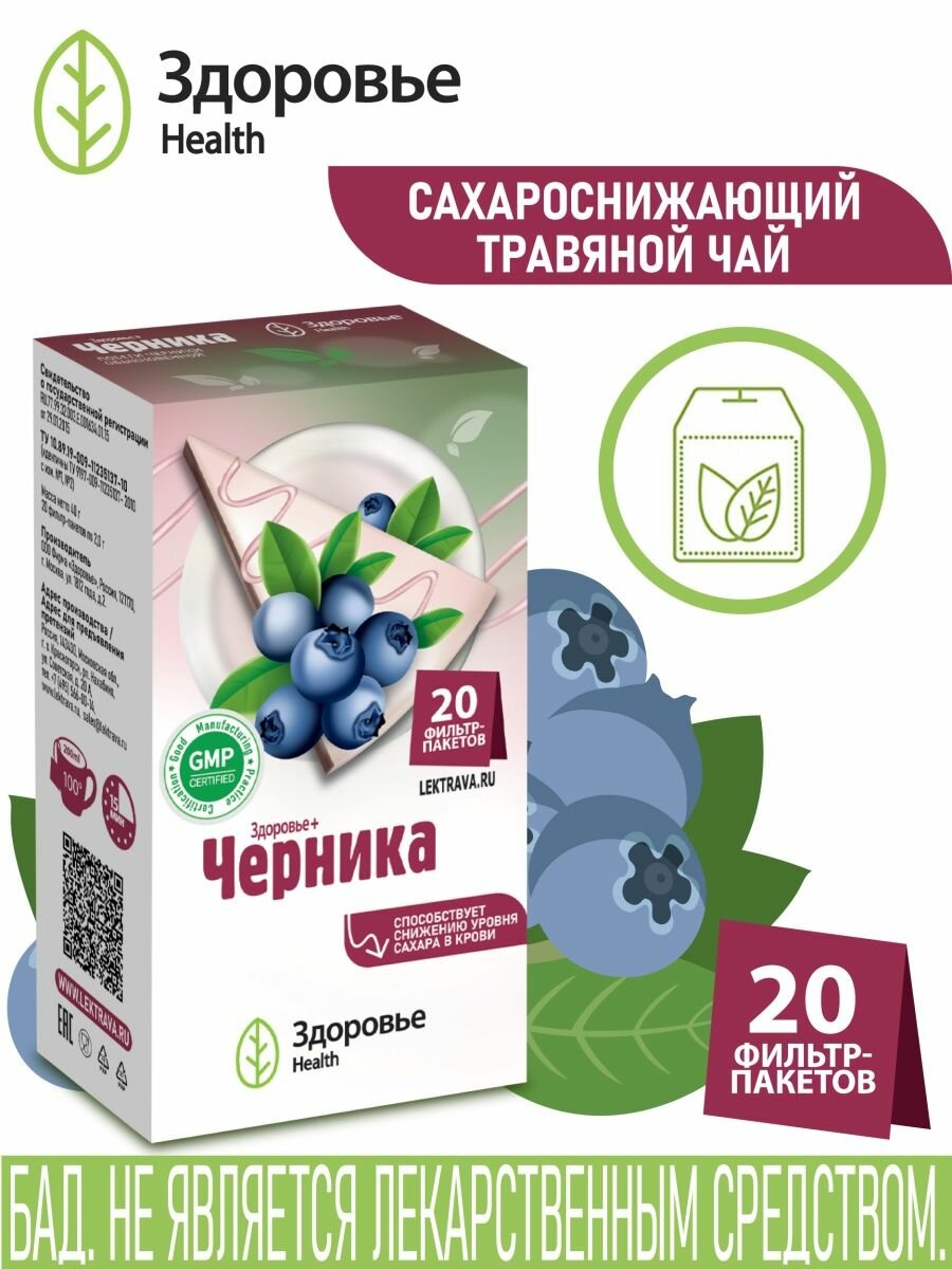 Фиточай "здоровье+черника" фильтр-пак. 20г. №20 (бад) Фирма Здоровье (1395896)