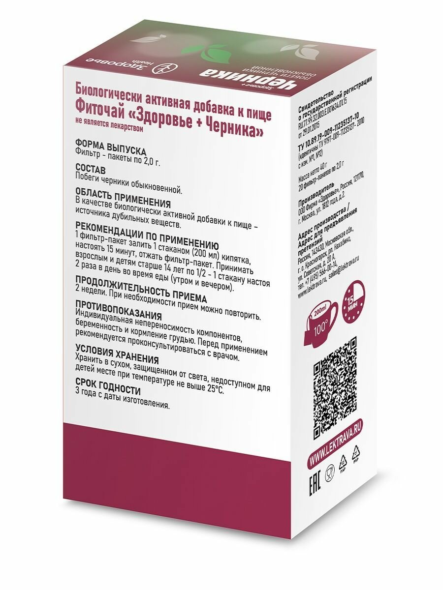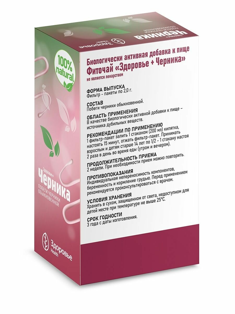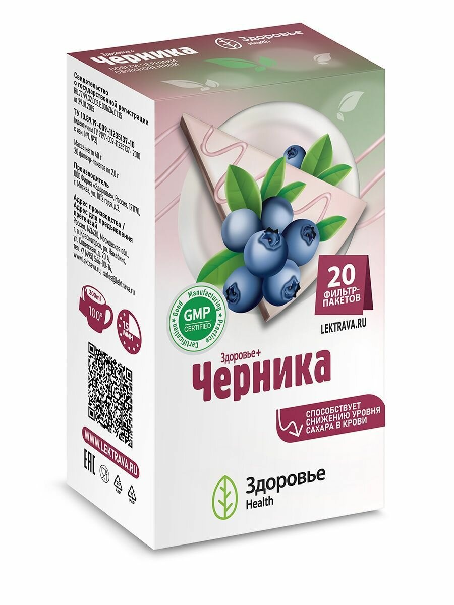 Фиточай "здоровье+черника" фильтр-пак. 20г. №20 (бад) Фирма Здоровье (1395896)