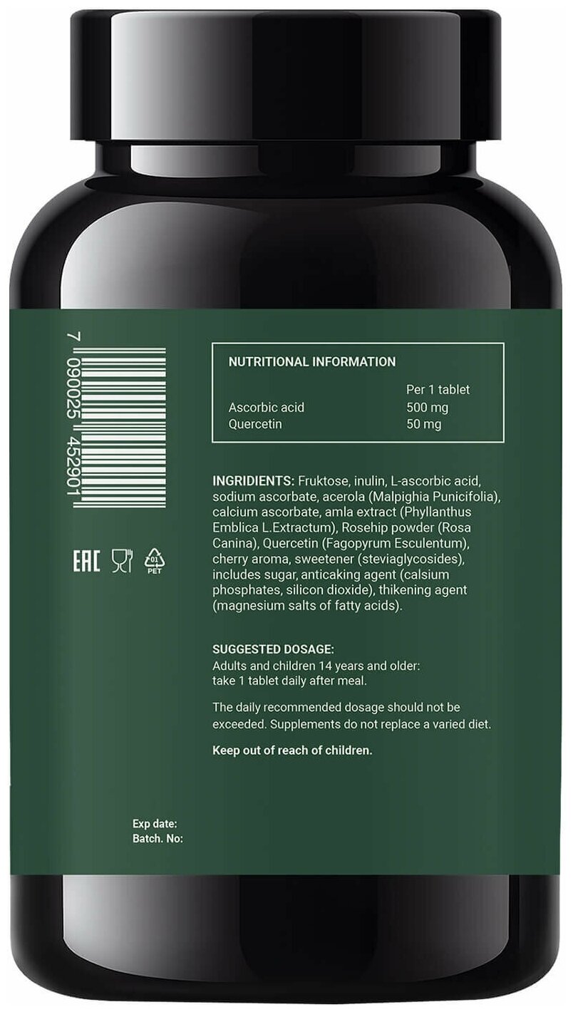 | Состав | аскорбиновая кислота 500 мг, кверцетин 50 мг |