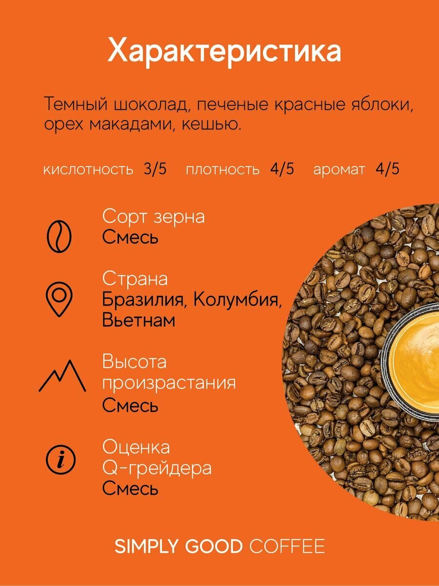 Кофе в зернах Венская обжарка 1кг это смесь 100% арабики из Вьетнама, Бразилии и Колумбии. Главная особенность сорта степень обжарки, между средней и темной. Обжаренные зерна имеют благородный шоколадный оттенок и яркий аромат. Вкус кофе. Напиток почти лишен кислотности и сохраняет сладость, присущую сортам средней обжарки. Обладает легкой горчинкой. Вы почувствуете плотный шоколадный вкус с цитрусовыми оттенками. Остывая, кофе раскроется нотами ириса. Сорт сочетается с молоком. Черный кофе подойдет для любителей крепкого напитка. Способы приготовления. Лучше всего Венская обжарка раскроется в турке, рожковой кофемашине, автоматической кофемашине, гейзерной кофеварке. Можно заваривать в кружке. Идеально подходит для напитков на основе эспрессо: капучино, латте, американо и других. Для кого. Приготовить вкусный напиток из Венской обжарки сможет и новичок. Сорт не требует серьезных навыков бариста, «прощает небольшие ошибки», идеально подходит для дома. Понравится любителям плотного, при этом вкусного кофе, поклонникам кофе с молоком, любителям бодрящего эспрессо. Универсальный сорт для всей семьи или офиса. Это вкусный подарок для друга, мамы и папы, на 23 Февраля, 8 Марта, Новый год. Приятный презент для учителя, воспитателя, врача и просто хорошего человека. Каждый кофеман хотя бы раз в жизни обязан попробовать нашу Венскую обжарку!Упаковка: Профессиональная трехслойная фольгированная упаковка, клапан дегазации, многоразовый замок зип-лок.Сохранить аромат и вкус зерен надолго.Если по каким-то причинам вам не понравился наш кофе, значит, произошла ошибка: неверно подобран сорт или способ приготовления. Мы открыты для диалога с покупателями и всегда подберем лучшее решение для вас. Свежая обжарка или склад. Мы заботимся о своих клиентах! Выбирайте между быстрой доставкой со склада маркетплейса и свежей обжаркой сразу после заказа. Весь кофе, доставляемый с нашего склада в Ижевске, будет обжарен в день заказа, на карточке таких сортов вы увидите значок «Свежая обжарка». Simply Good Coffee. Мы сами привозим зерно с лучших кофейных плантаций разных стран, обжариваем его на инновационных ростерах воздушной обжарки, используем качественную многослойную упаковку с зип-локом и клапаном. Мы не позиционируем свой кофе как премиальный, а делаем качественный продукт доступным.