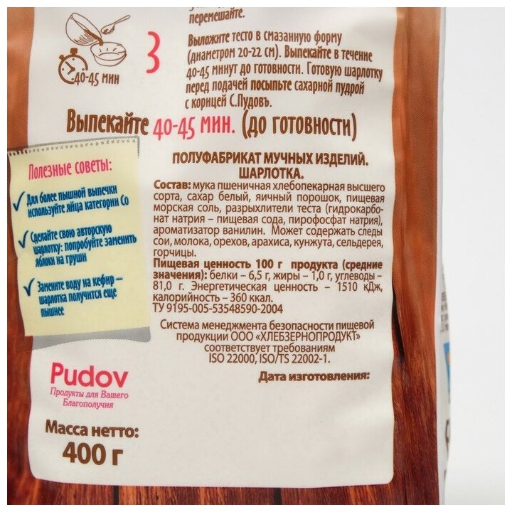 Сервис сравнения цен СкидкаГИД предлагает сравнить цены на товар «Смесь С.Пудовъ Шарлотка 400г Хлебзернопродукт»