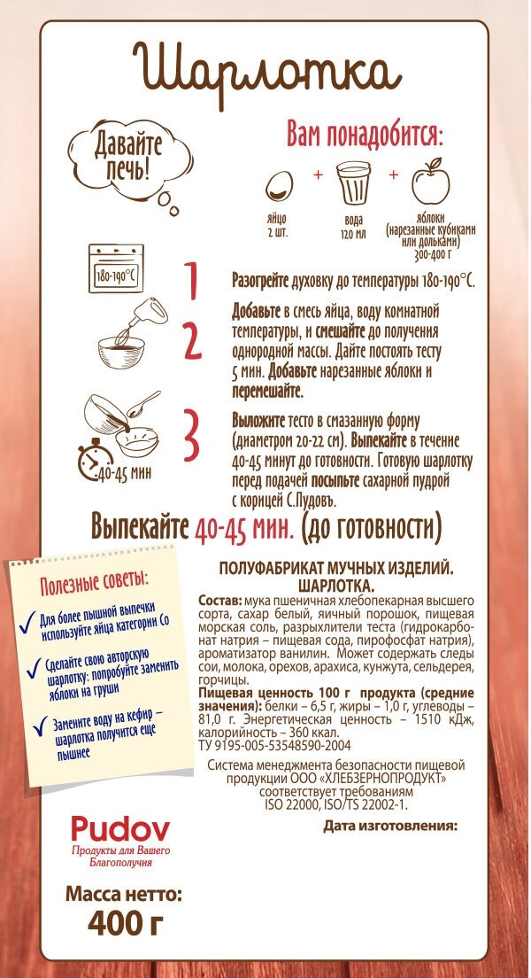 Смесь С.Пудовъ Шарлотка 400г Хлебзернопродукт