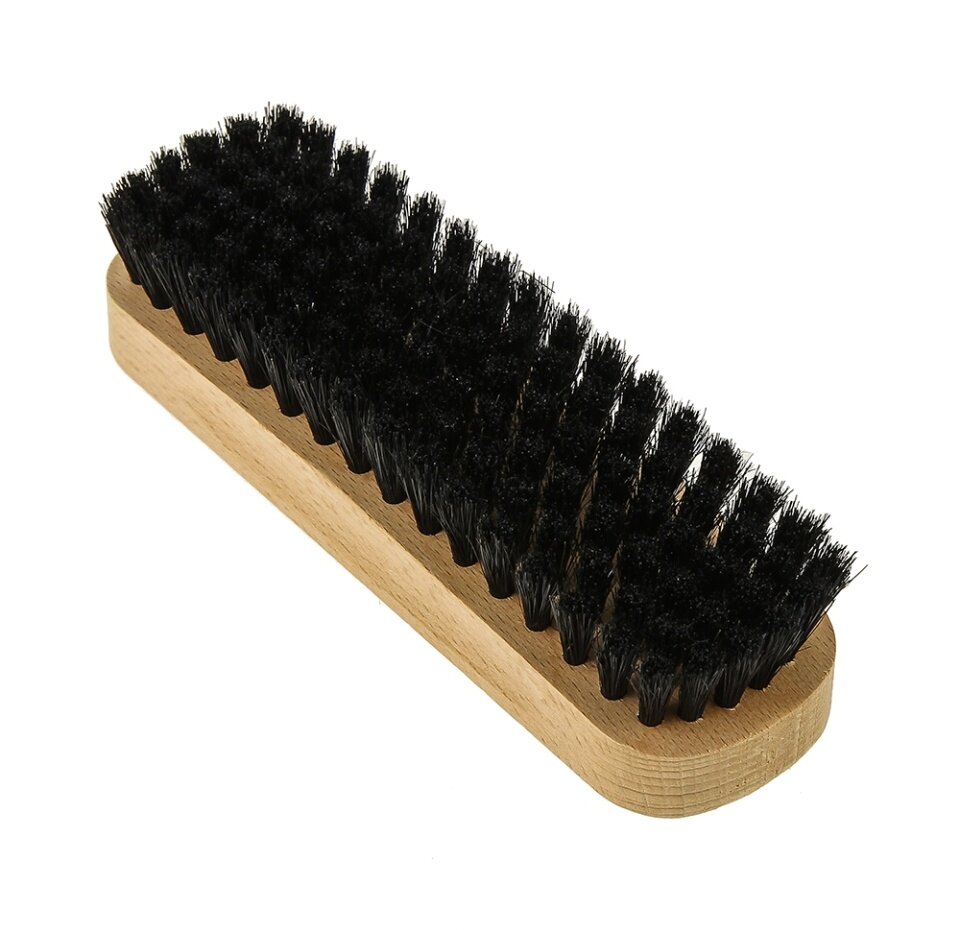 Деревянная щетка из натурального, мягкого конского ворса, для чистки, полировки, нанесения различных средств на гладкую кожу. Щетка предназначена для обуви из деликатных и эксклюзивных видов гладкой кожи.