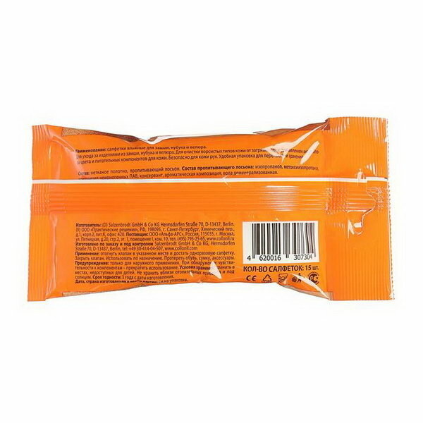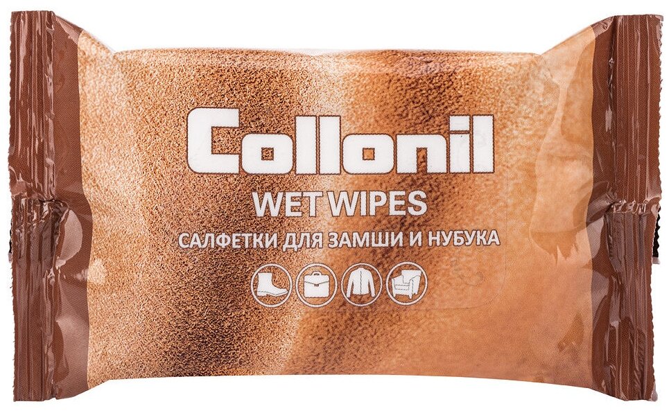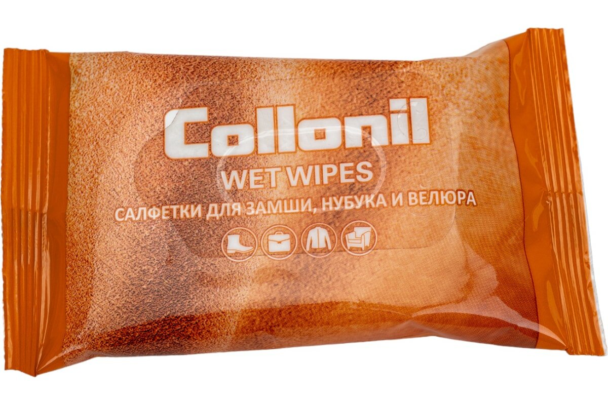 Чистящие влажные салфетки Collonil изготовлены из нетканого волокна с пропитывающим лосьоном. Инновационная формула отлично подходит для чистки обуви из замши и нубука.