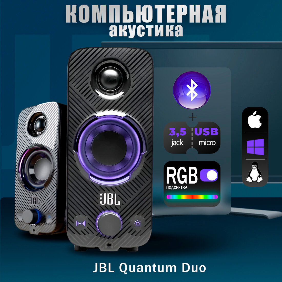 Сервис сравнения цен СкидкаГИД предлагает сравнить цены на товар «Колонки JBL Quantum Duo 2.0 черный [jblquantumduoblkeu]»