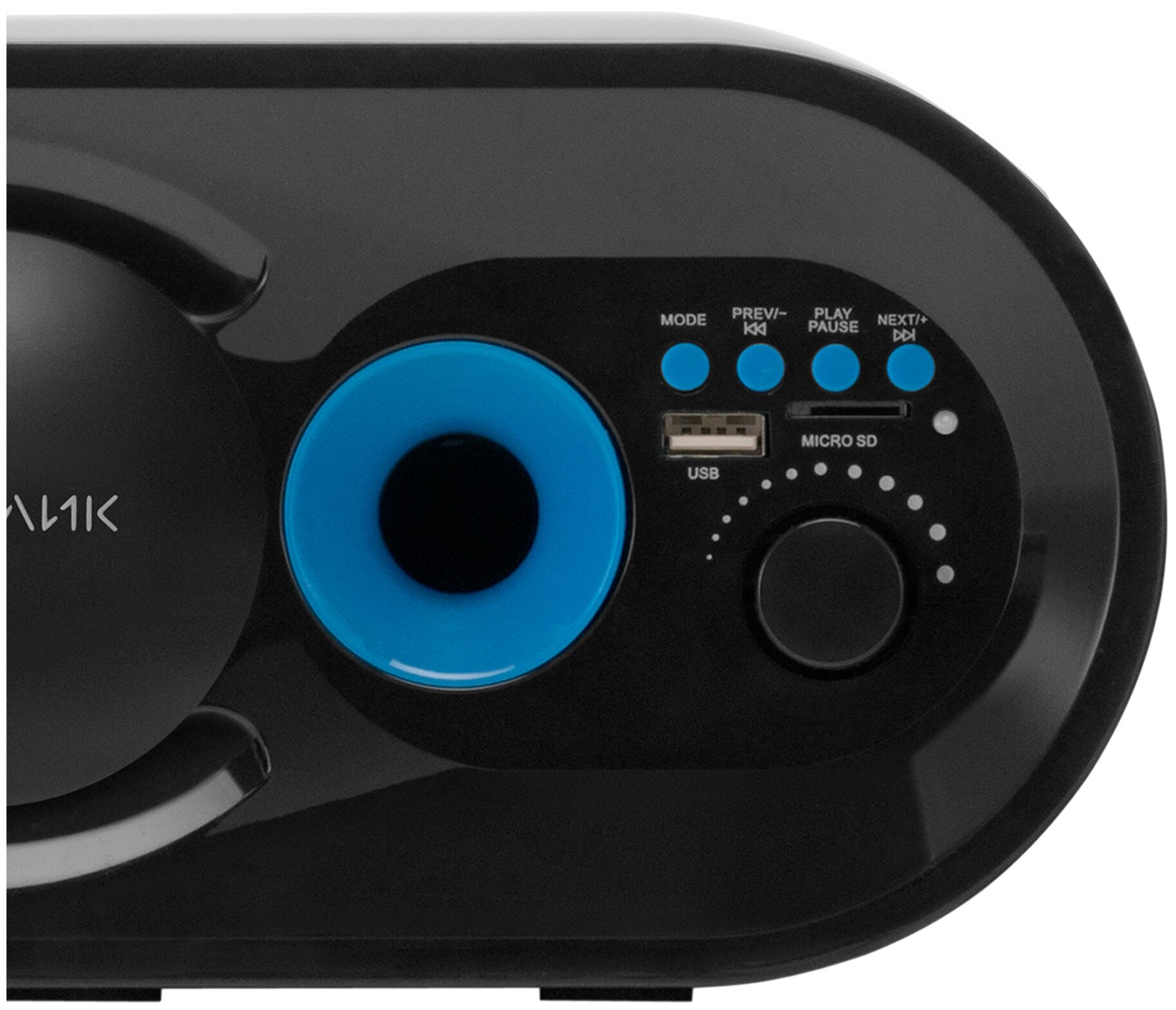 Система состоит из фронтальных колонок и сабвуфера. Поэтому звучание получается качественное и объемное. Суммарная мощность колонок 15 Вт, вроде не сильно много, но для небольшой квартиры этого вполне хватает. Предусмотрен стерео вход AUX, также колонки поддерживают карты памяти.