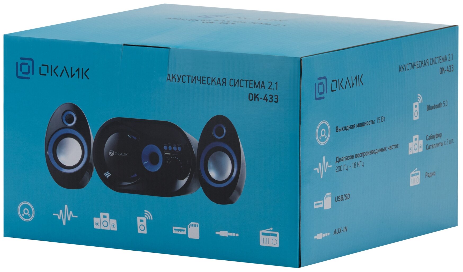 Колонки Bluetooth OKLICK OK-433 2.1 черный [2071bkt]