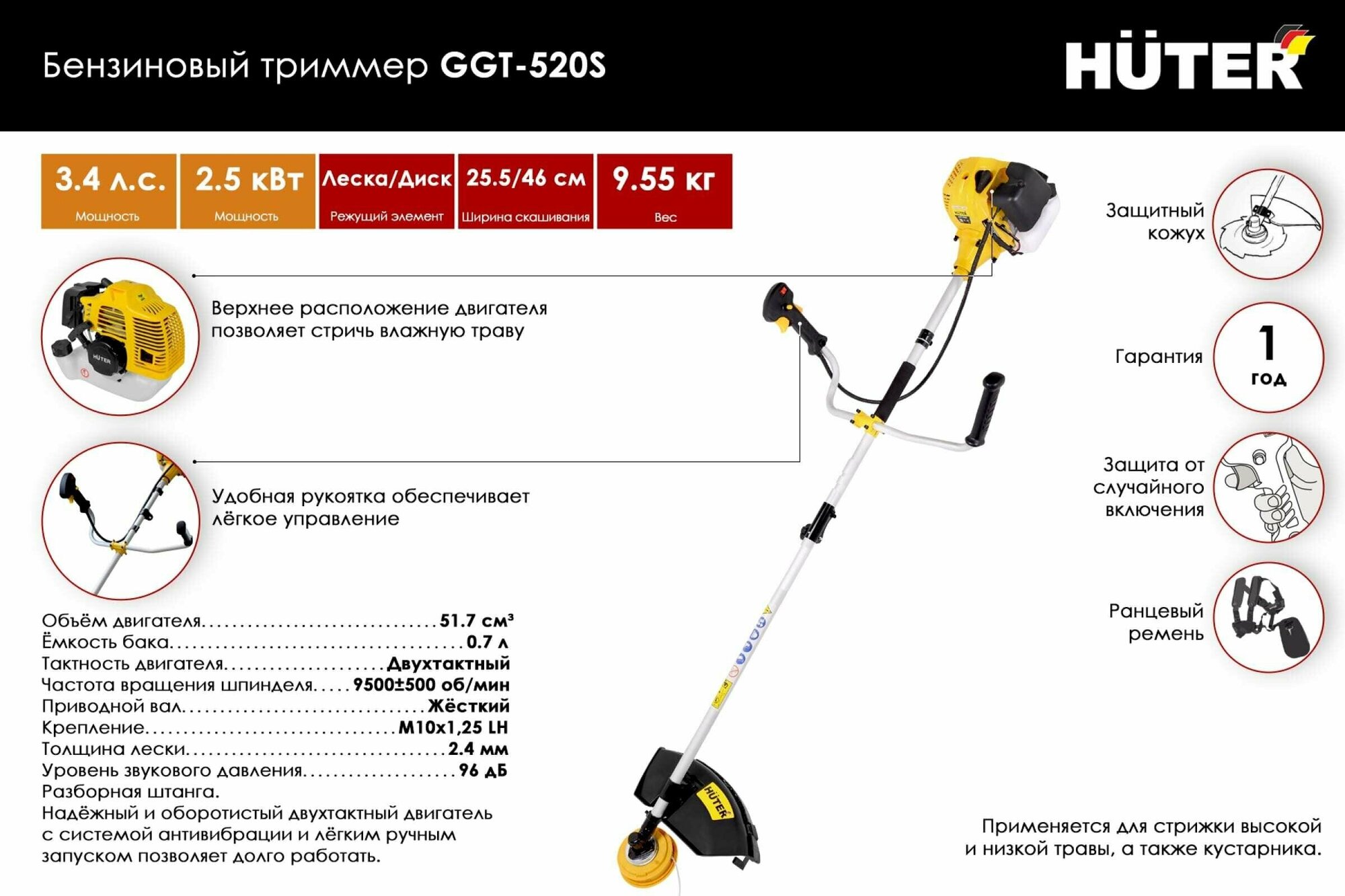Триммер бензиновый HUTER GGT-520S разборная штанга [70/2/33] (размер: 12 U)