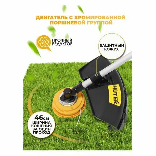 Триммер бензиновый HUTER GGT-520S - мощный инструмент для скашивания, представляет собой современный вариант традиционного для этого вида работ ручного инструмента - косы. Часто дачники отдают приоритет этой бензиновой модели, ведь не на каждом участке есть электричество, а провода создают дополнительное неудобство. Мощность триммера позволяет снимать не только высокую и низкую траву, но древесную поросль и кустарники. Кроме того, у этой модели не плечевой ремень, а ранцевый, что облегчает работу с триммером.