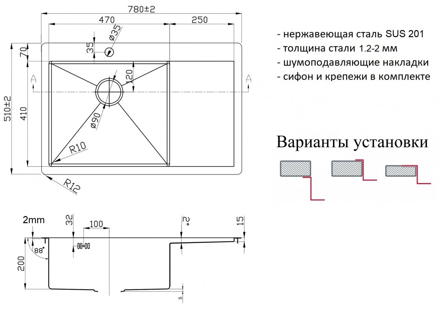 - Монтаж: Встраиваемая сверху, встраиваемая снизу, интегрированная (вровень со столешницей).