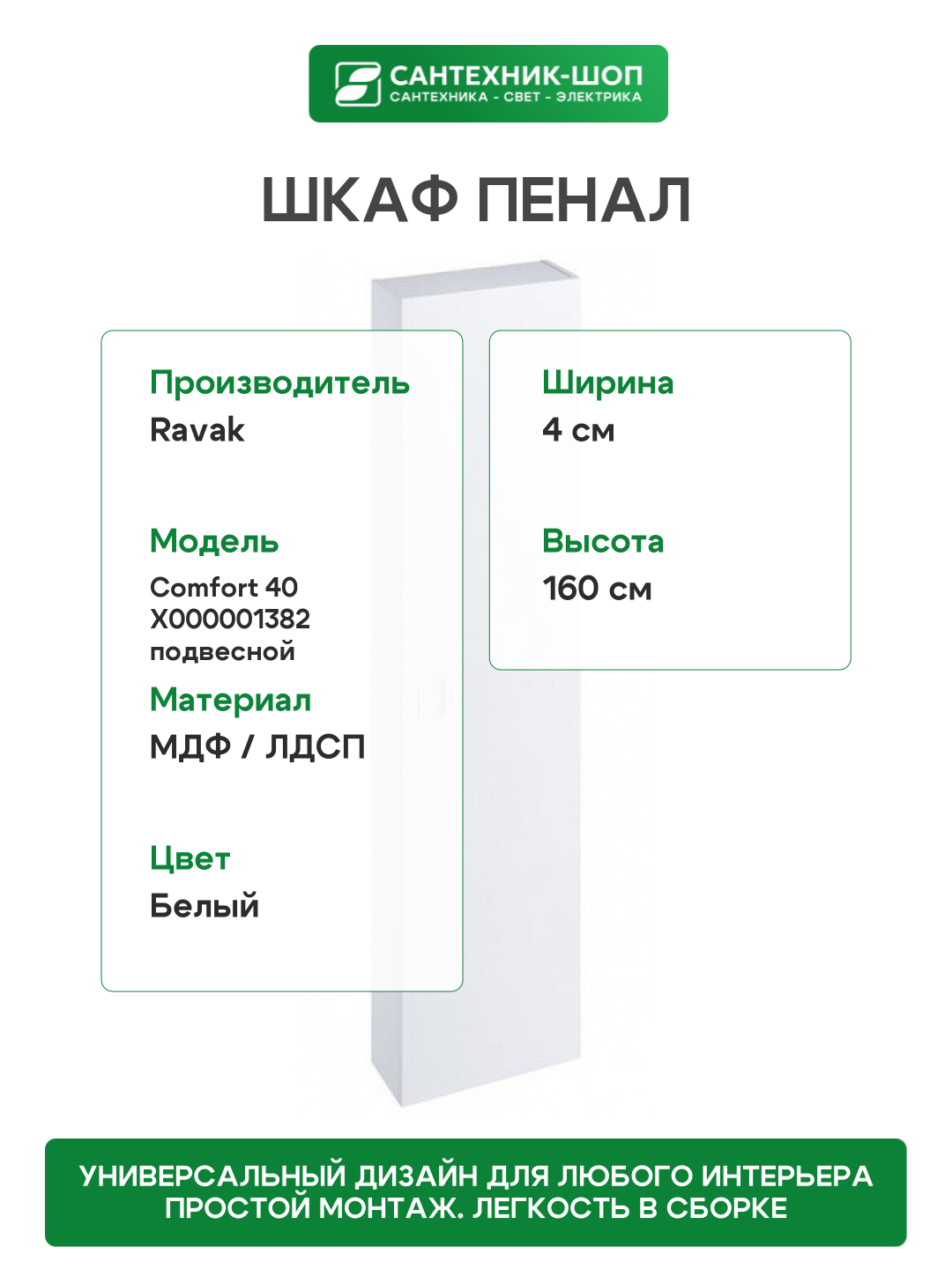 Шкаф пенал Ravak SB Comfort 40 X000001382 подвесной Белый глянец