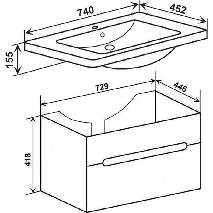 - Размеры (ШхВхГ): 729х418х446 мм.