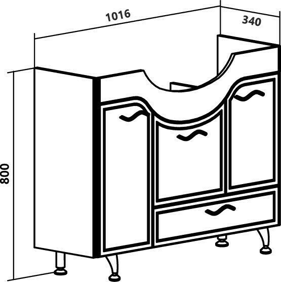 Тумба под раковину RUNO севилья - безупречная классика в современном исполнении в оформлении ванной комнаты. Тумба под раковину в ванную комнату севилья (напольная) - выполнена в традиционном и всегда модном белом цвете и гармонично впишется в любой интерьер ванной комнаты. Тумба в ванную имеет одну распашную дверцу, две откидные дверцы и нижний выдвижной ящик на шариковых направляющих. Левый откидной фасад укомплектован встроенной корзиной для белья. В комплекте к тумбе идут 4 ручки, петли со встроенным доводчиком, 2 хромированные и 2 пластиковые ножки. К тумбе для ванной комнаты подходит керамическая раковина "Стиль" (1055*500 мм), глубиной - 21 см. Мебель для ванной RUNO - красота и практичность в мелочах!