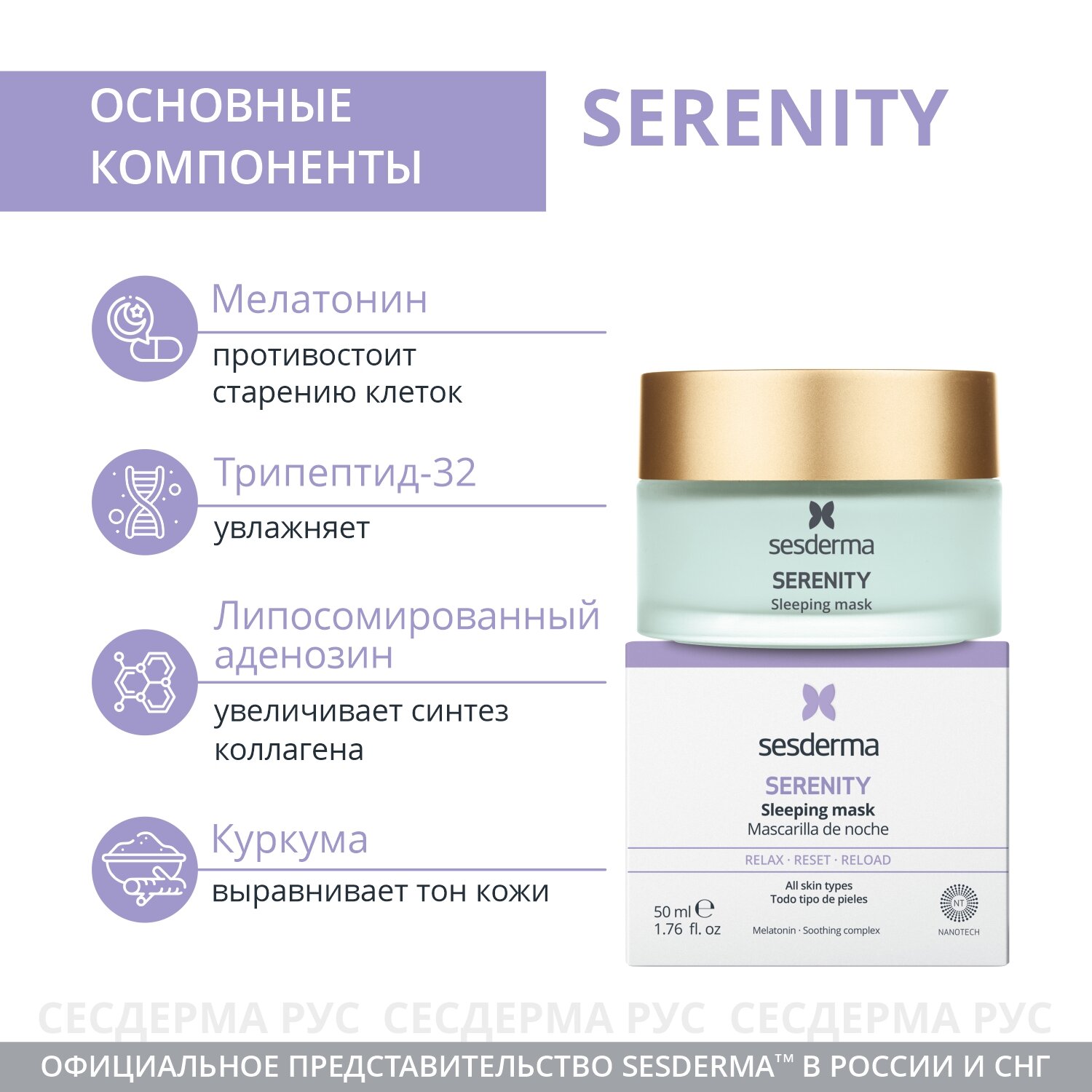 Сервис сравнения цен СкидкаГИД предлагает сравнить цены на товар «Sesderma Маска ночная для лица 50 мл (Sesderma ) Serenity»