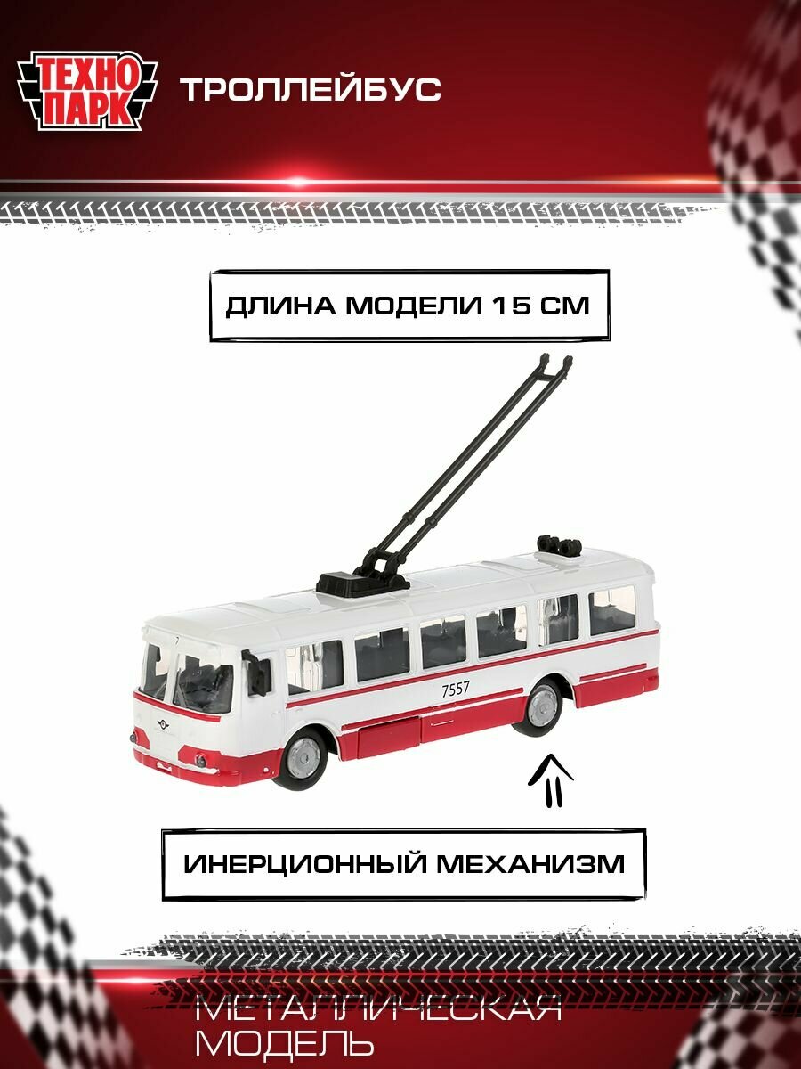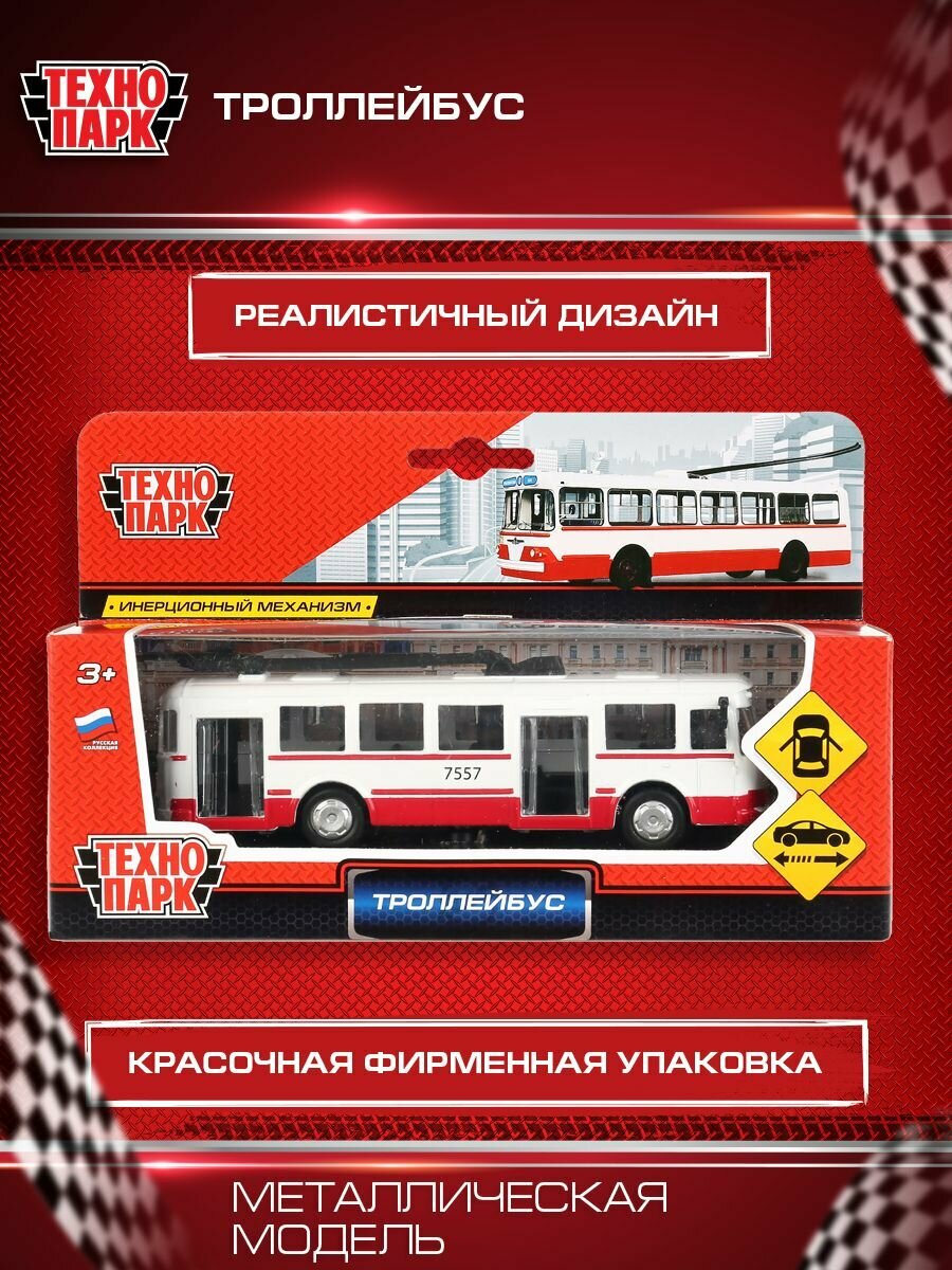 Развивающая игрушка инерционная металлическая модель «Троллейбус» ТМ «Технопарк».