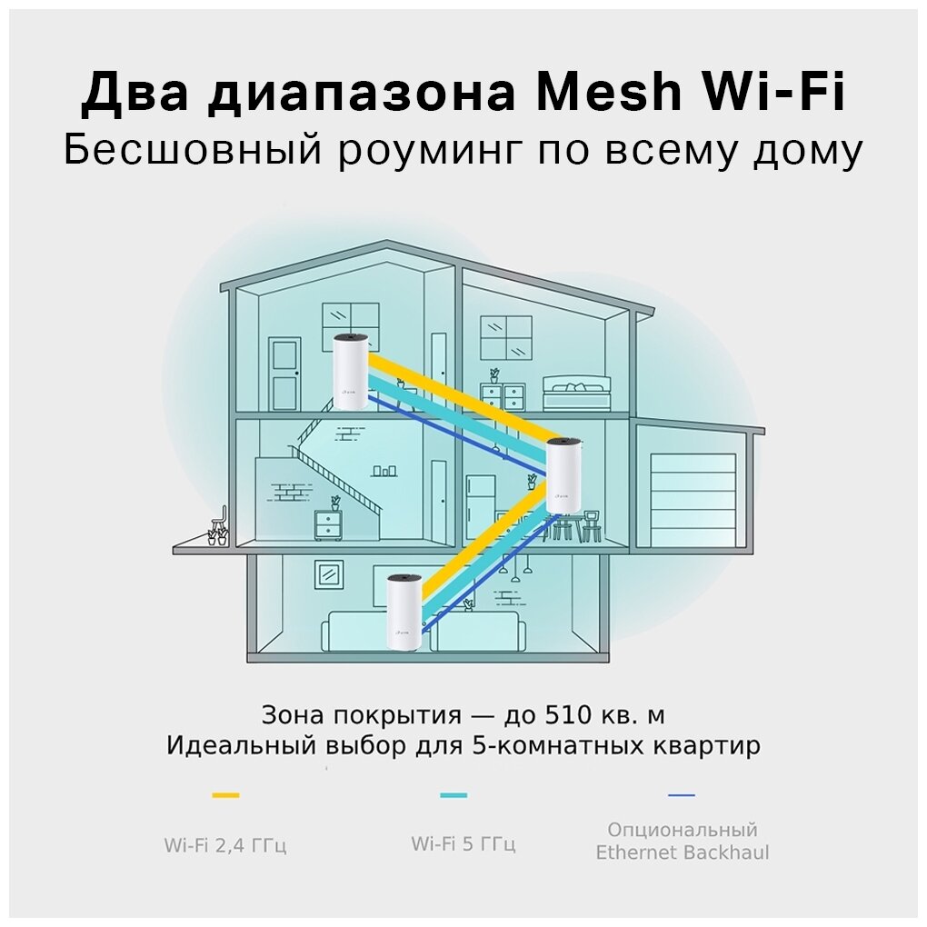Для бесперебойного доступа к Wi-Fi во всем доме использует систему модулей, что позволяет избавьтесь от "мертвых зон". Модули Deco образуют единую домашнюю сеть с одним именем. Клиентские устройства будут автоматически переключаться между разными модулями Deco на высокой скорости, вне зависимости от перемещений устройств. Комплект обеспечивает покрытие до 260 м2. Для покрытия еще большей площади, в уже существующую Mesh систему можно добавить отдельный модуль. Deco обеспечивает одновременное соединение для более чем 100 устройств. Родительский контроль ограничивает время в сети и блокирует соответствующий контент, создавая уникальные профили для каждого члена семьи. Настройка системы осуществляется в том числе с помощью мобильного приложения Deco.