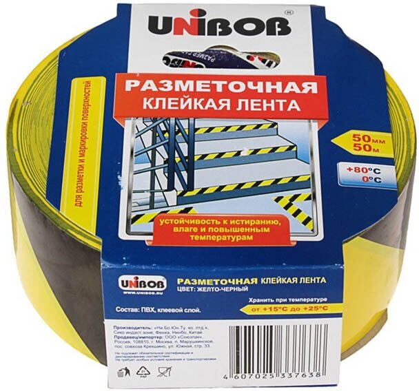 Клейкая лента разметочная UNIBOB 48905 50 мм х 50 м желто-черная