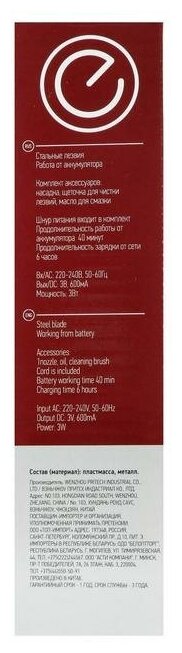 | Дополнительная информация | стальные лезвия, мощность 3 Вт |