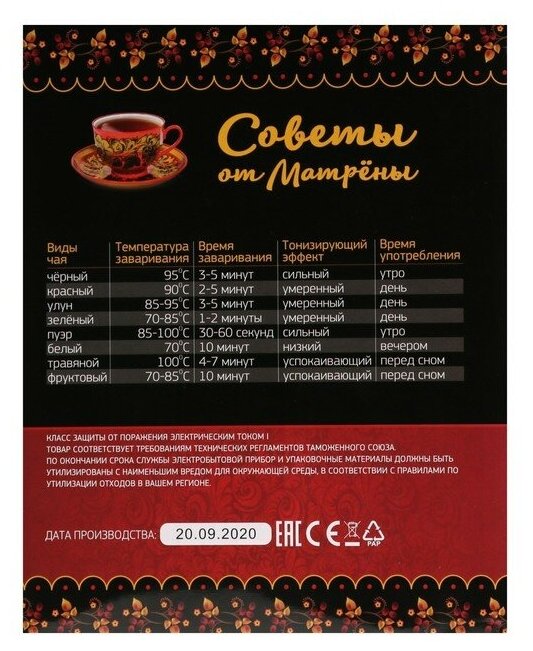 | Комплект поставки | Электрический чайник, подставка, документация |