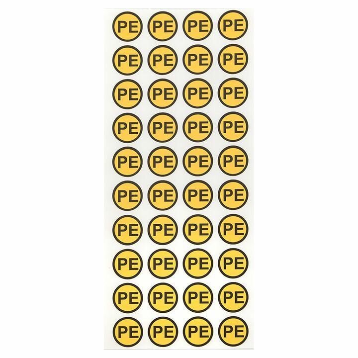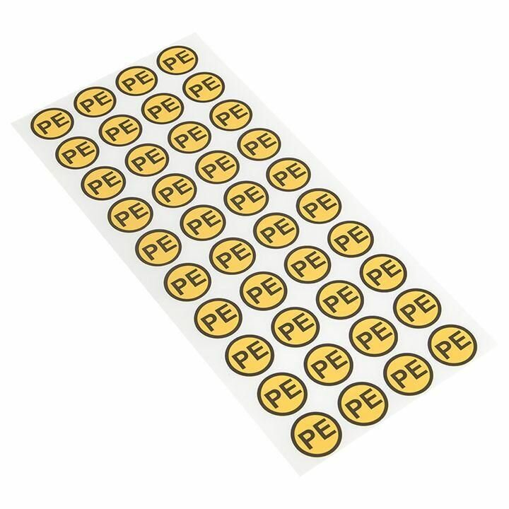 Наклейка PE (1шт) d20мм EKF – аксессуар. Представляет собой предупреждающий знак с нанесенной на нем символом "PE". Круглый, диаметром 20 мм, надпись на желтом фоне черными символами, с клейкой основой.