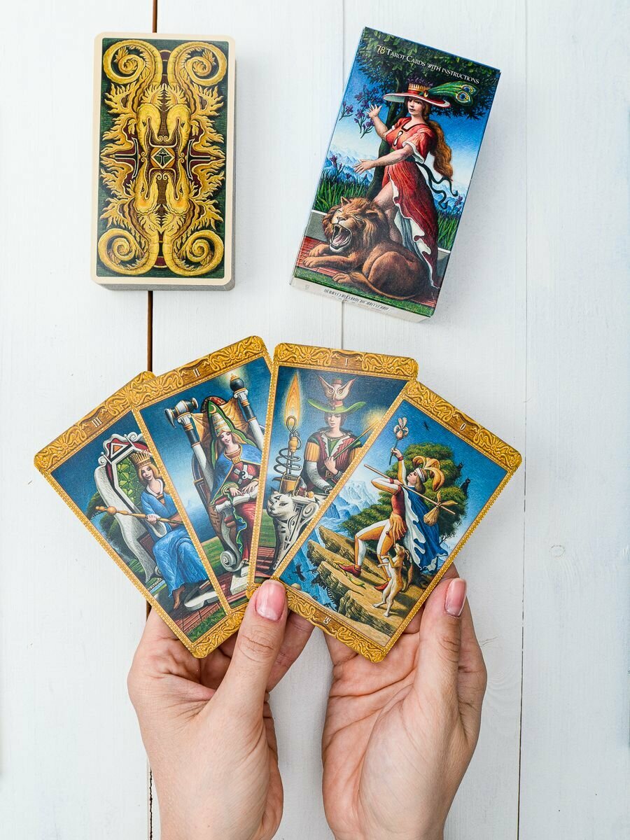 Символика, магия и мистика древности полонила воображение художника и ученого, подобно алхимикам прошлого, вы лившего новую форму прекрасного произведения искусства. Краска пластами ложится на деревянную основу, делая каждый Аркан шедевром живописи, сохраняя при этом традиции средневековой мистики и технику живописи, присущие итальянскому Таро.