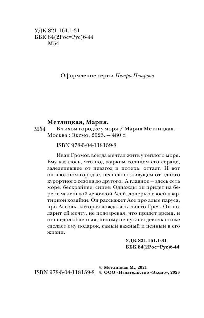 Книга: В тихом городке у моря (Метлицкая Мария Робертовна); ООО "Издательство "Эксмо", 2021