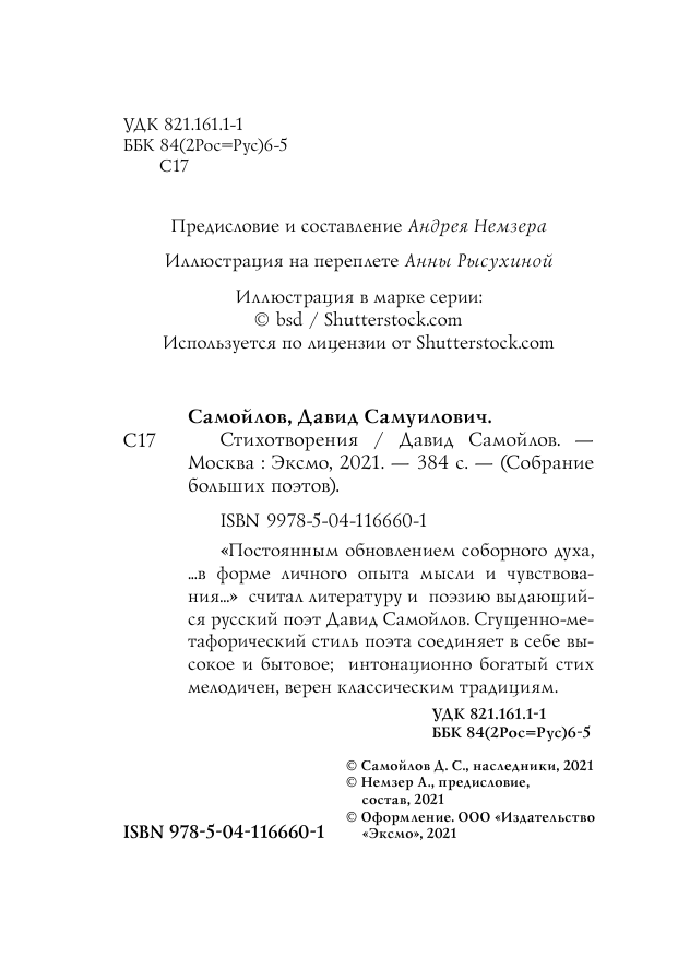 Книга: Стихотворения (Самойлов Давид Самойлович); ООО "Издательство "Эксмо", 2021