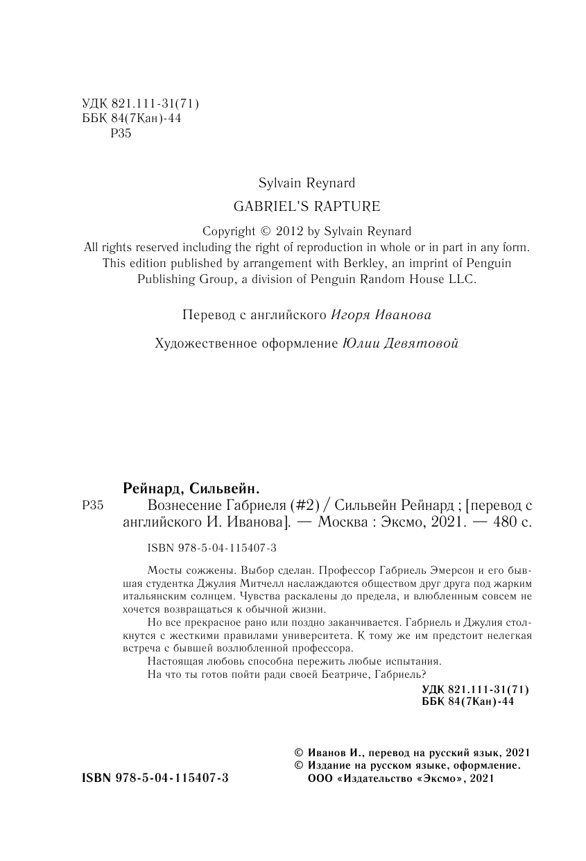 Книга: Вознесение Габриеля (Сильвейн Рейнард); Эксмо, Inspiria, Редакция 1, 2021