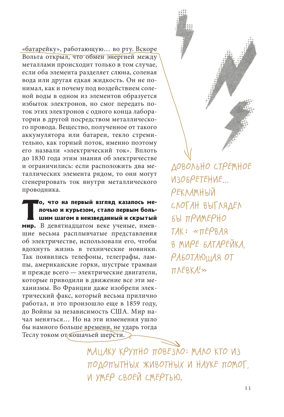 как складывался их путь к всеобщему признанию, через что им пришлось пройти, чтобы люди помнили их имена десятилетиями и веками. В "Темной истории" можно проследить весь жизненный путь великого изобретателя. Мне очень понравилось, что вся информация подается без того занудства, которое так часто встречается в биографиях. А забавные заметки на полях отлично поднимают настроение, да и сообщают довольно интересные факты. Собственно вся книга представляет собой малоизвестные, очень известные, местами забавные, а местами и грустные факты о жизни и достижениях Николы Теслы. Все подается в доступной форме, так что даже далекие от науки люди (прям как я) прекрасно могут все понять. Больше всего меня поразило то, какое влияние на самом деле изобретатель оказал на дальнейшее развитие всего мира. Наша жизнь могла выглядеть абсолютно иначе.