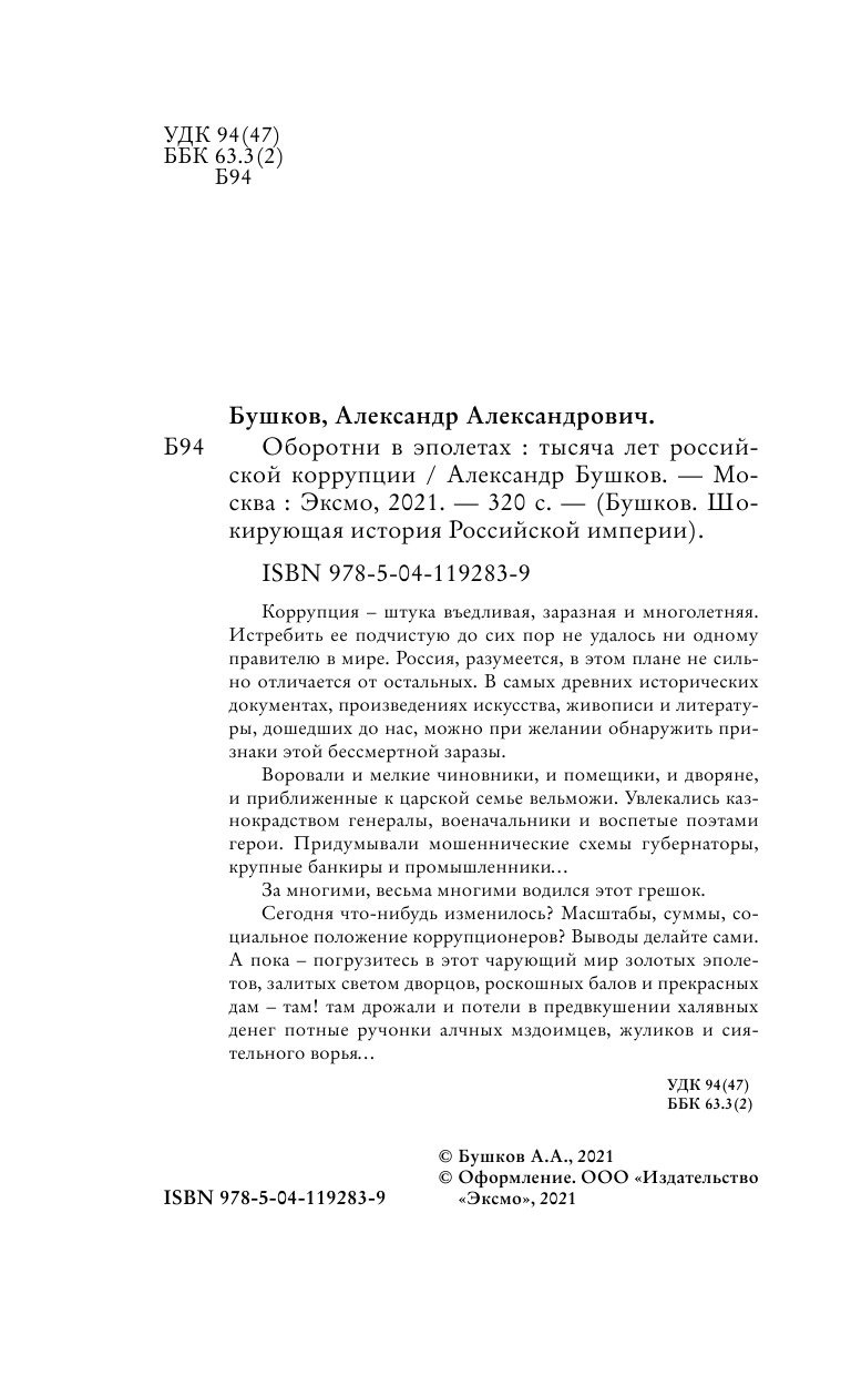 Оборотни в эполетах. Тысяча лет Российской коррупции (Александр Александрович Бушков); Эксмо, 2021