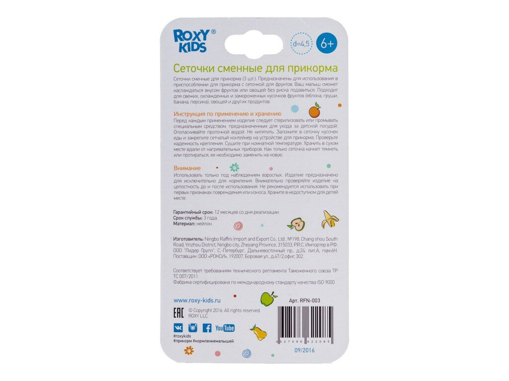 Сеточки сменные для прикорма малышей предназначены для использования в ниблере ROXY-KIDS.