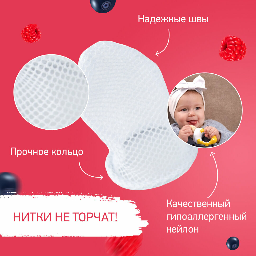 Прочная нейлоновая сеточка безопасна для здоровья вашего ребенка, после приема пищи ее очень легко очистить.
