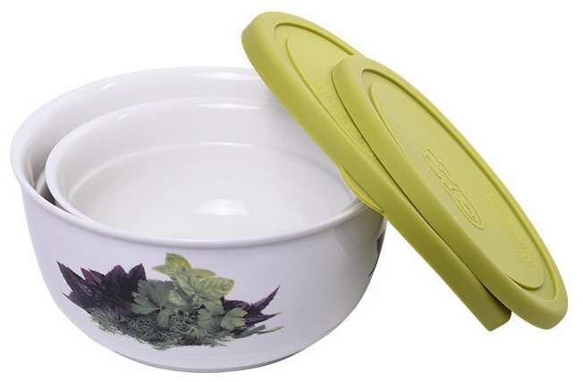 | Состав набора | Набор из 2-х керамических салатников с силиконовыми крышками 1,2л, 0,6л |