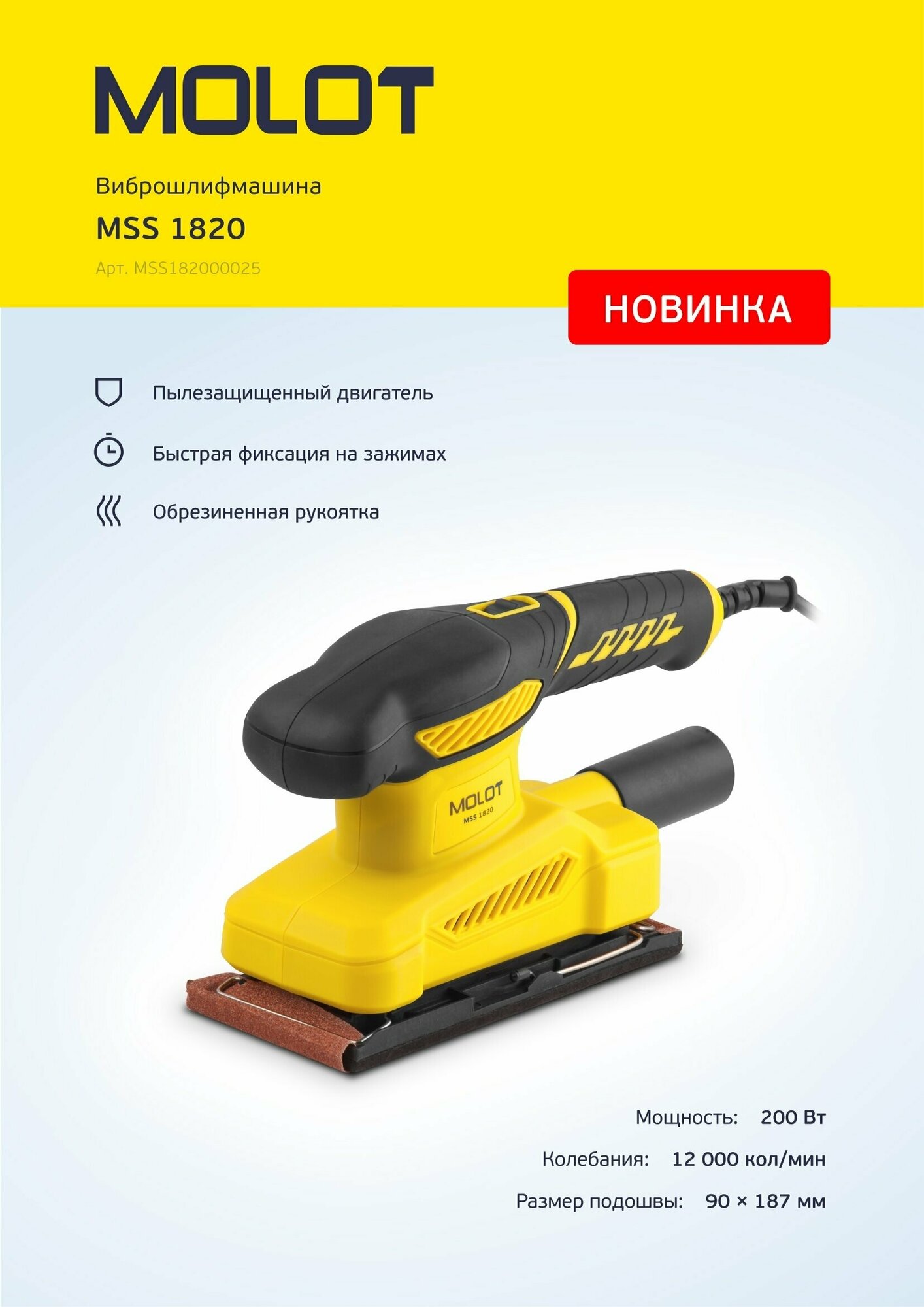 Сервис сравнения цен СкидкаГИД предлагает сравнить цены на товар «Вибрационная шлифовальная машина Molot MSS 1820»