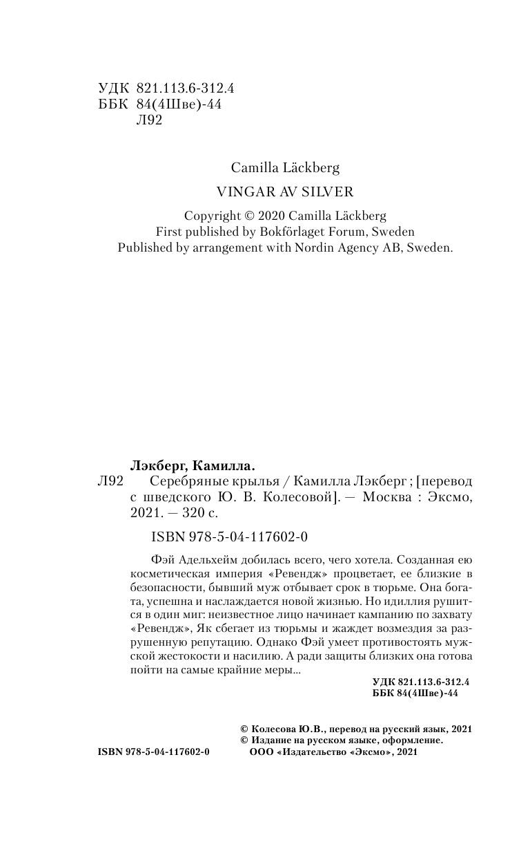 Книга: Серебряные крылья (Камилла Лэкберг); Эксмо, Редакция 1, 2021