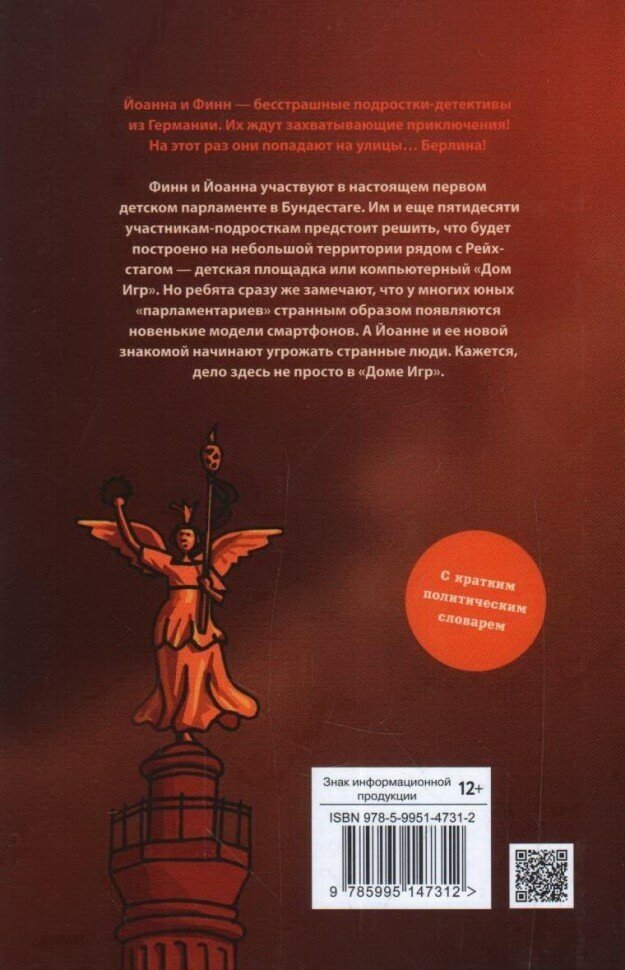 Йоанна и Финн - бесстрашные подростки-детективы из Германии. Их ждут захватывающие приключения! На этот раз они попадают на улицы Берлина! Финн и Йоанна участвуют в настоящем первом детском парламенте в Бундестаге. Им и еще пятидесяти участникам-подросткам предстоит решить, что будет построено на небольшой территории рядом с Рейхстагом - детская площадка или компьютерный "Дом Игр". Но ребята сразу же замечают, что у многих юных "парламентариев" странным образом появляются новенькие модели смартфонов. А Йоанне и ее новой знакомой начинают угрожать странные люди. Кажется, дело здесь не просто в "Доме Игр"…