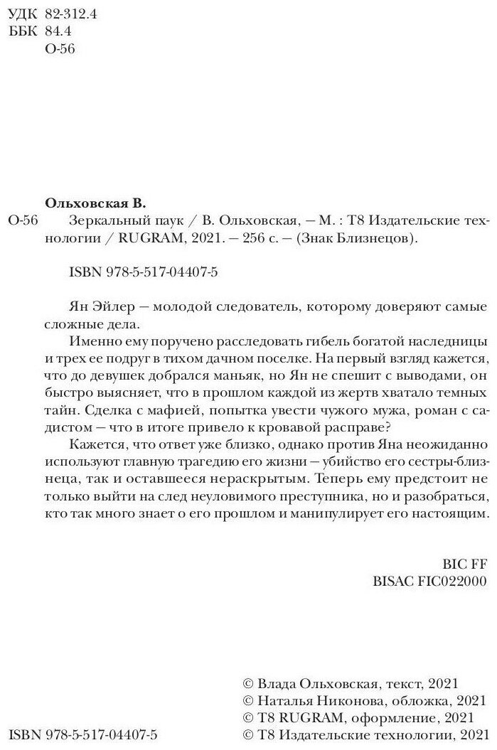 Книга: Зеркальный паук (Ольховская Влада); RUGRAM_Publishing, 2021