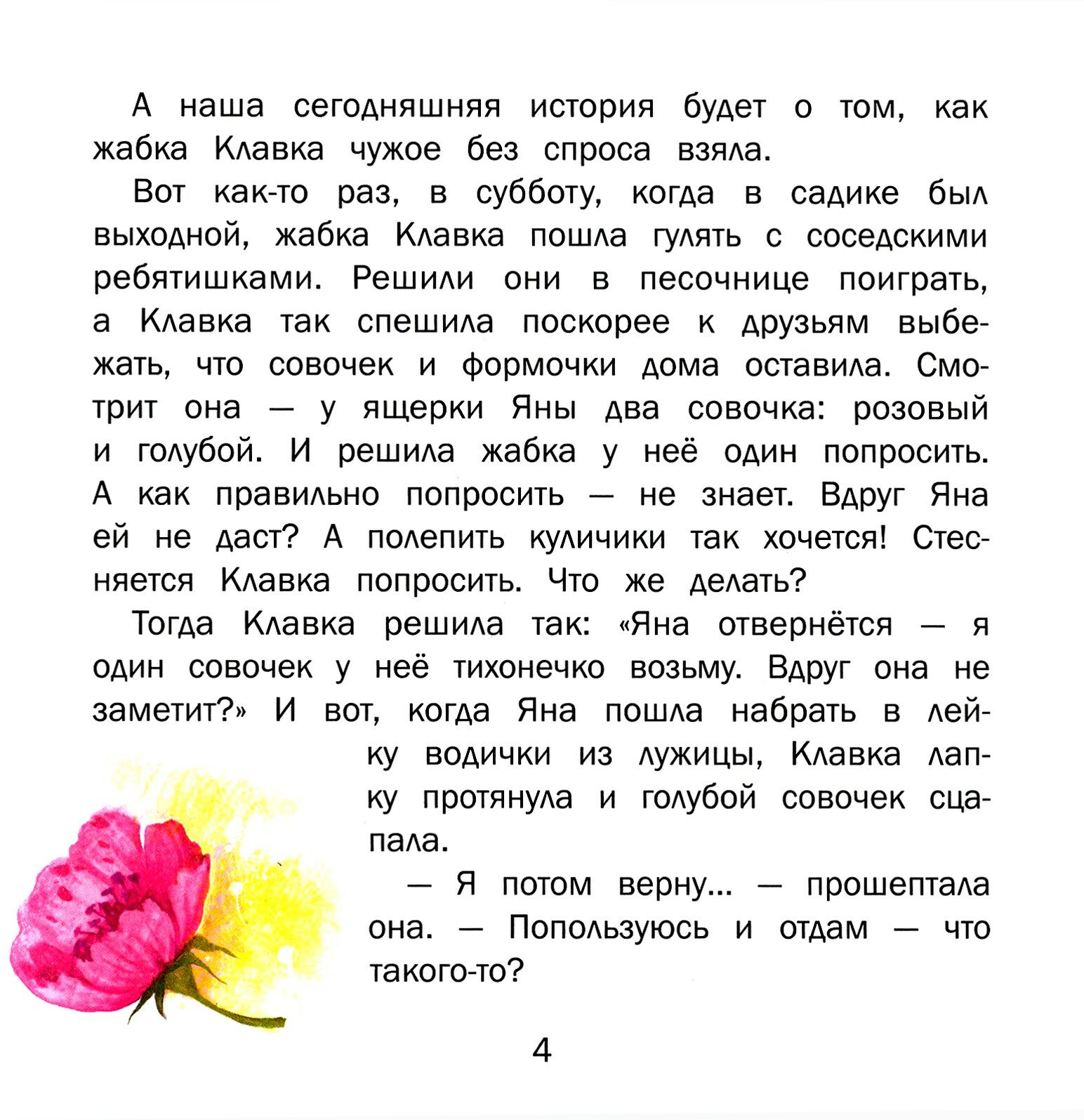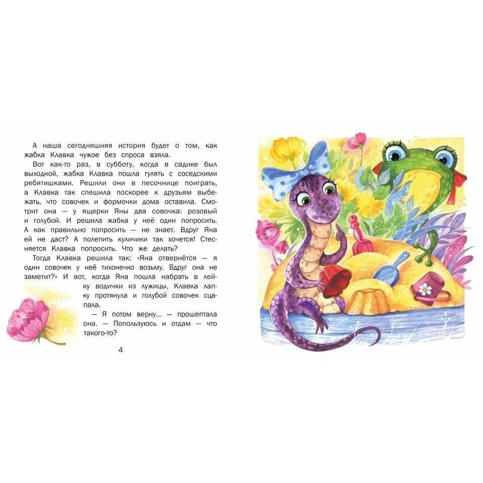 Жабка Клавка такая шалунишка, хитрюга и разбойница! Она так любит взять что-нибудь чужое без спроса. И всегда забывает вернуть.