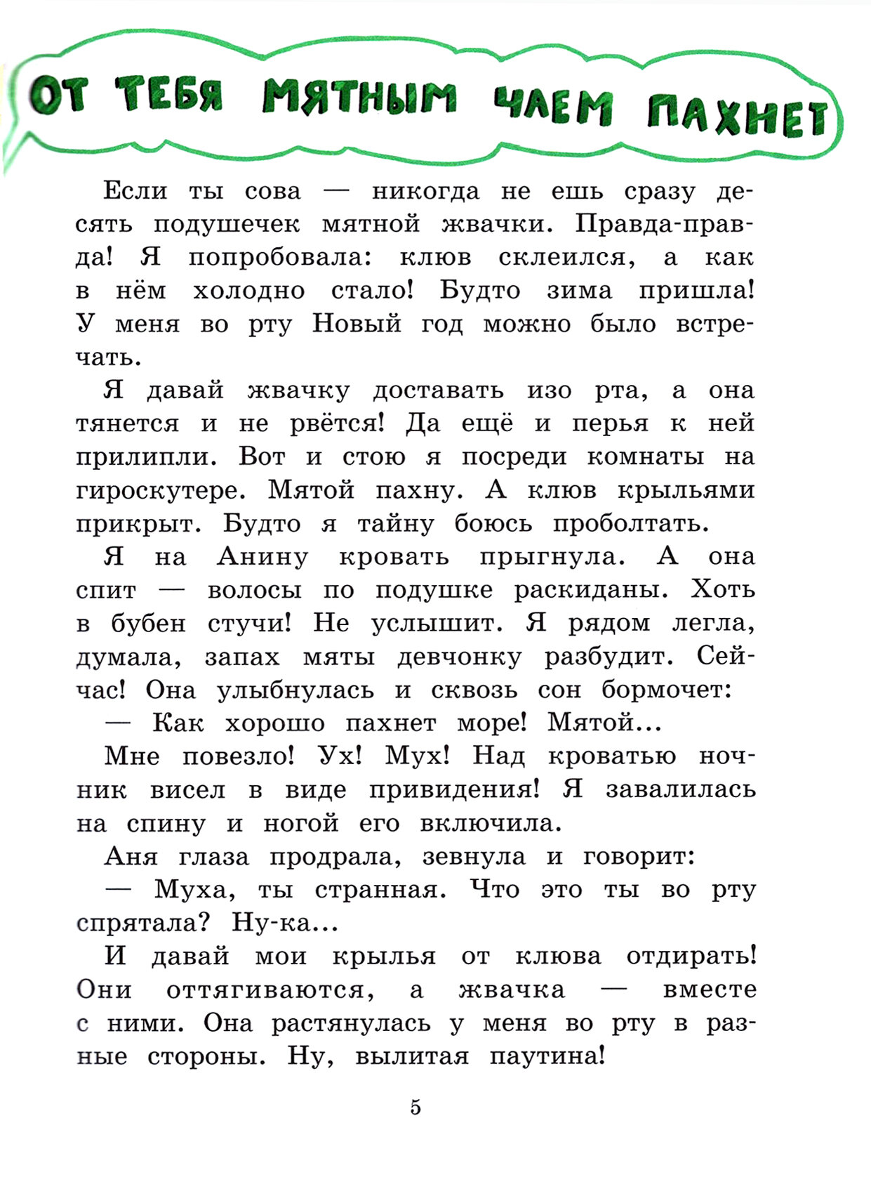 Если ты волшебная сова — никогда не ешь сразу десять подушечек жвачки! Вот я съела — и испортила себе все перья! Пришлось возвращаться в совиный мир, чтобы дракон мне перья вылечил. И друзей с собой брать. Вдруг придётся мир спасать? Одна я не справлюсь. В моём мире у всех появляются необычные способности. Вот и у ребят тоже появились.