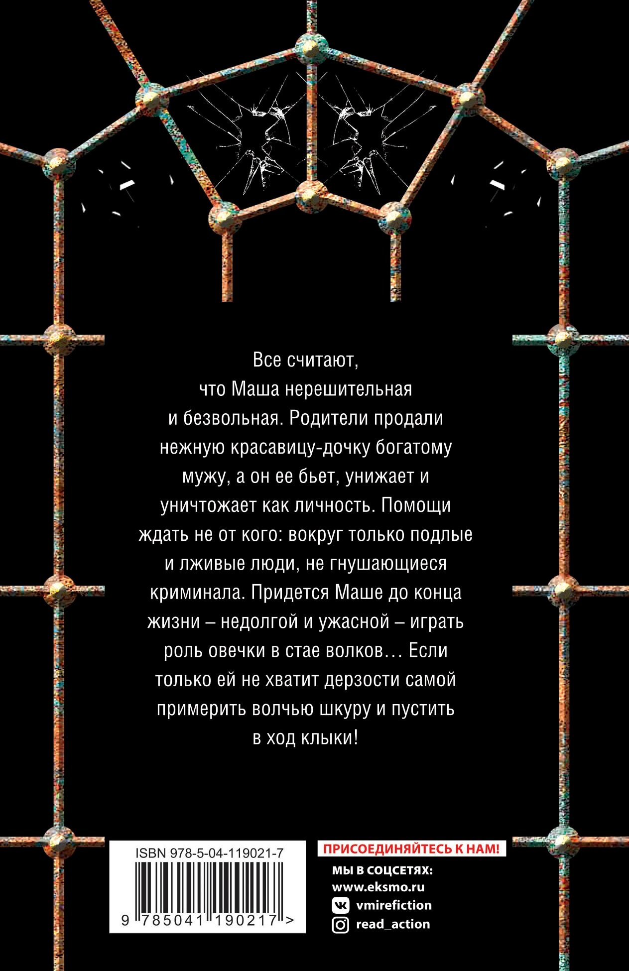 Все считают, что Маша нерешительная и безвольная. Родители продали нежную красавицу-дочку богатому мужу, а он ее бьет, унижает и уничтожает как личность. Помощи ждать не от кого: вокруг только подлые и лживые люди, не гнушающиеся криминала. Придется Маше до конца жизни – недолгой и ужасной – играть роль овечки в стае волков… Если только ей не хватит дерзости самой примерить волчью шкуру и пустить в ход клыки!