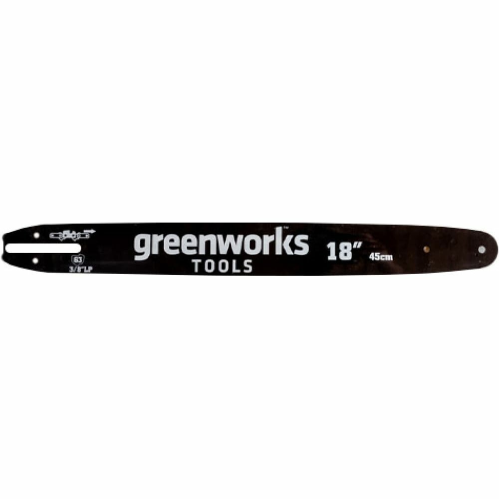 Шина Greenworks 45см 1.1мм 63зв для электрической цепной пилы Greenworks 2000W 20037. Изготовлена из кремнистой стали.