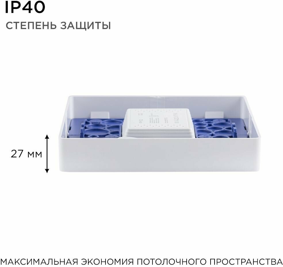 Светодиодная панель излучает световой поток в 1200Лм, потребляя при этом 15Вт, что в итоге дает энергоэффективность 80Лм/Вт. Цветовая температура 2700К - это цвет теплого предзакатного солнца. Теплый цвет свечения создает уютную атмосферу в помещении. Встроенный драйвер снимет вопрос о том, как его разместить, и облегчит монтаж светильника. Квадратная форма корпуса подчеркнет четкость линий и поможет людям, находящимся в помещении, чувствовать себя безопаснее и увереннее. Накладной тип монтажа позволит смонтировать эту панель на любую плоскость, а наличие в комплекте всех необходимых для этого деталей подарит возможность не задумываться в последний момент, где их взять.