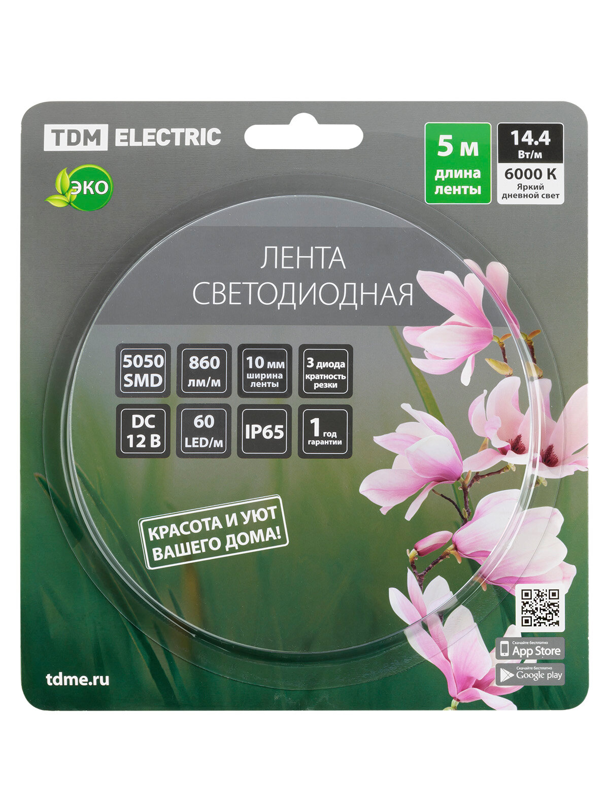 Применение:Для декоративной и функциональной подсветки. Подсветка витрин с ювелирными изделиями и торговых экспозиций.Декоративная подсветка мебели, торцевая подсветка стеклянных полок, баров, витражей и витрин.Контурная подсветка лестниц.Контурная подсветка рекламных букв и коробов.Освещение потолочных конструкций, ниш, интерьерных сооружений.Тюнинг автомобилей.Освещение холодильных и морозильных установок.Преимущества:Простота монтажа. Ленту можно резать кратно 3 светодиодам – для удобства на лицевой стороне ленты места отреза обозначены символом «Ножницы». На оборотной стороне ленты нанесен клеевой слой производства «3М» – мирового лидера в производстве клеевых материалов.Долгий срок службы. Применение качественных светодиодов, а также грамотный подбор резисторов гарантируют долгий срок службы (50 000 часов) и снижение светового потока не более чем 2% на каждые 1000 часов работы.Безопасность эксплуатации. Светодиодная лента работает от низкого напряжения 12 В, что абсолютно безопасно для человека. Безопасно для зрения – отсутствие пульсаций светового потока. Экологически безопасно – не содержит ртути, не требует специальной утилизации.Возможность использования при низких температурах. Для обеспечения степени защиты IP54 в герметичной ленте используется полиуретан – материал, который не теряет эластичности при низких температурах (до -40 ˚С).Удобство хранения. Светодиодная лента поставляется в фольгированных ZIP-пакетах, что предоставляет возможность длительного хранения отрезков ленты, защищая их от высыхания клеевого слоя, статического электричества, влажности и пыли.Гарантия качества. Каждый отрезок светодиодной ленты промаркирован знаком “TDM”, что гарантирует защиту от подделок. На светодиодную ленту предоставляется гарантия 2 года.Материалы:Гибкая медная плата.Клейкая лента 3М с высокими адгезивными свойствами.Световой поток светодиодного чипа SMD2835 5–6 лм, SMD5050 11–13 лм.Материал заливки (IP65) – полиуретан.Каждый отрезок 0,5 м промаркирован логотипом TDM ELECTRIC.