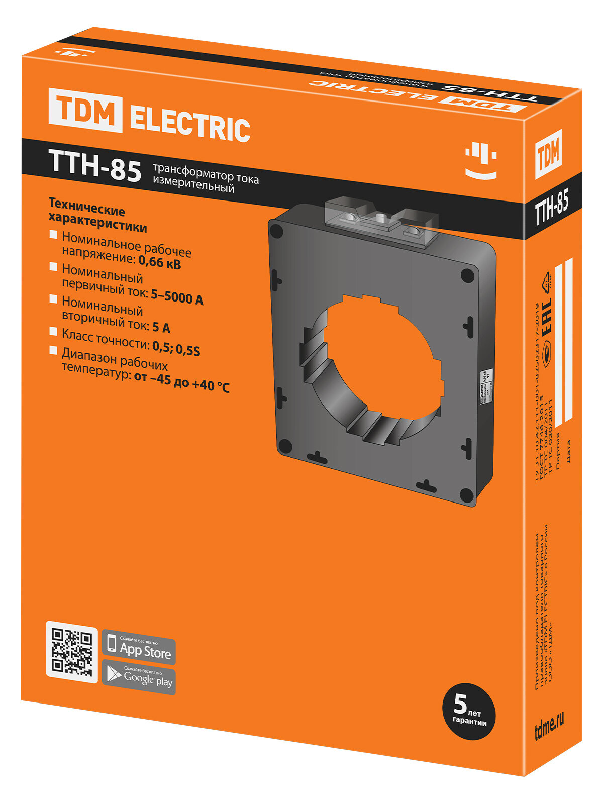 Трансформатор тока TDM ТТН 85/ 800/5-15va/0,5-Р