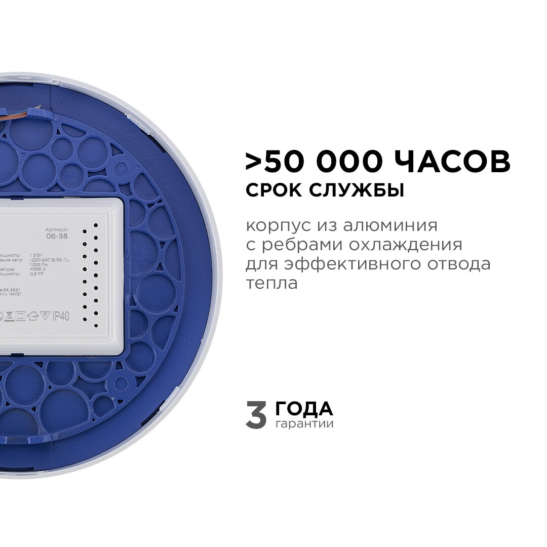 Светодиодная панель излучает световой поток в 1200Лм, потребляя при этом 15Вт, что в итоге дает энергоэффективность 80Лм/Вт. Цветовая температура 4500К наиболее близка к естественному солнечному свету и все более востребована на рынке. Встроенный драйвер снимет вопрос о том, как его разместить, и облегчит монтаж светильника. Круглая форма корпуса позволит создать дизайн с оттенками вечности, тайны и магии. Накладной тип монтажа позволит смонтировать эту панель на любую плоскость, а наличие в комплекте всех необходимых для этого деталей подарит возможность не задумываться в последний момент, где их взять.