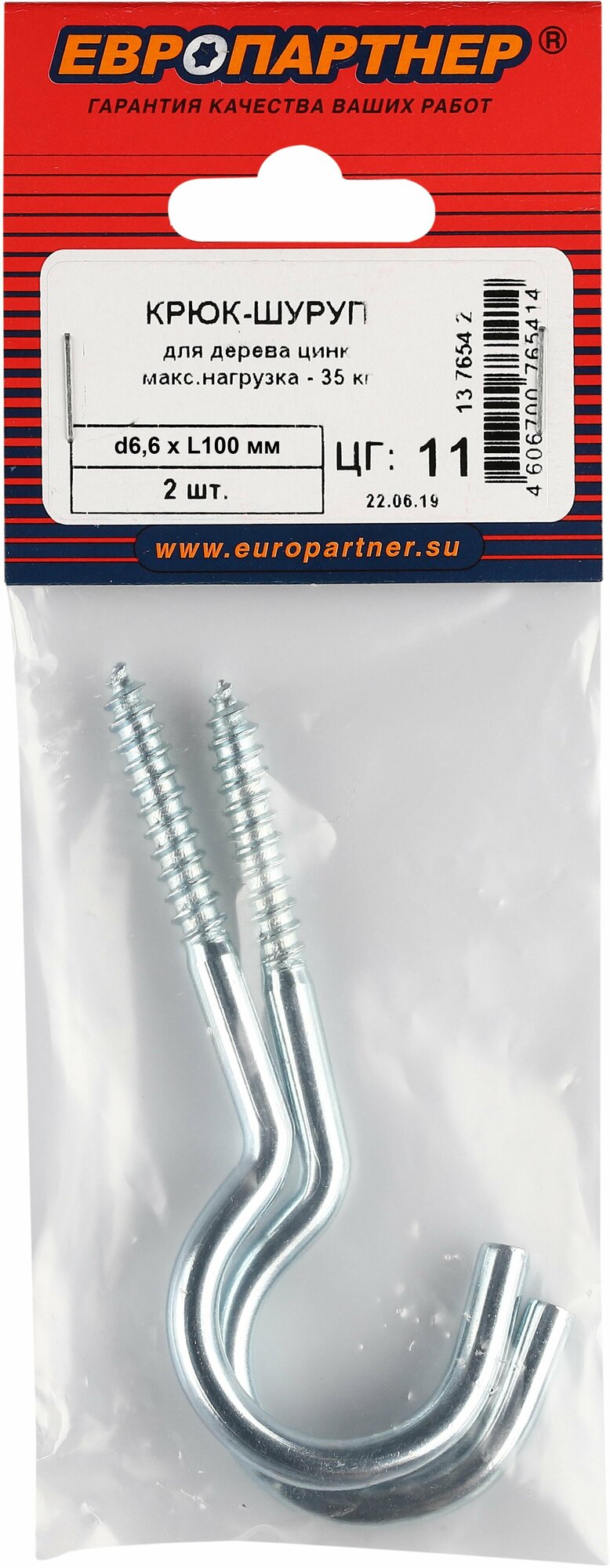 Крюк-шуруп Европартнер 66 х 100 оцинкованный 2 шт d6,6хL100 мм 2 шт.