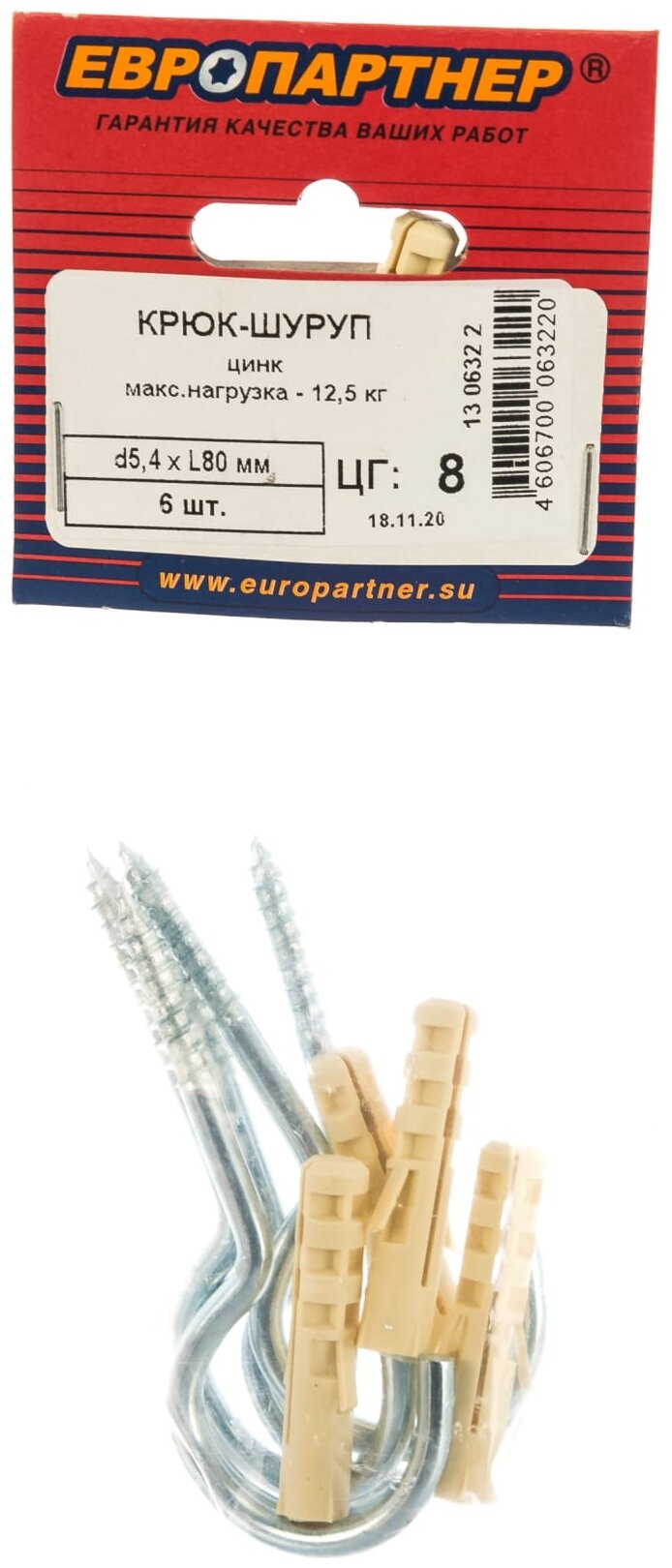 Сервис сравнения цен СкидкаГИД предлагает сравнить цены на товар «Крюк-шуруп Европартнер 54 х 50/80 оцинкованный 6 шт»