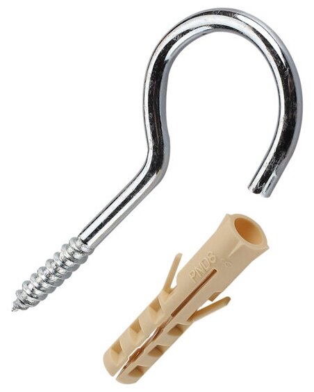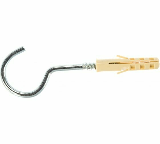 Крюк-шуруп используется для устройства креплений легкого типа. Предназначен для установки в основание из дерева или пластика, также используется для монтажа в бетонное, каменное основание и твердые породы древесины с использованием распорного дюбеля, для кладки из блоков из легкого бетона &mdash. со специальным дюбелем для легких бетонов. Длина подбирается для определенной задачи подвески, веса подвешиваемой конструкции или оборудования, материала основания.